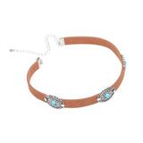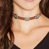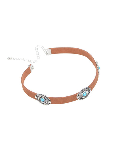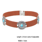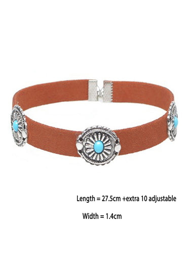 Brown Retro Metal Plated Suede Collar/Choker Necklace