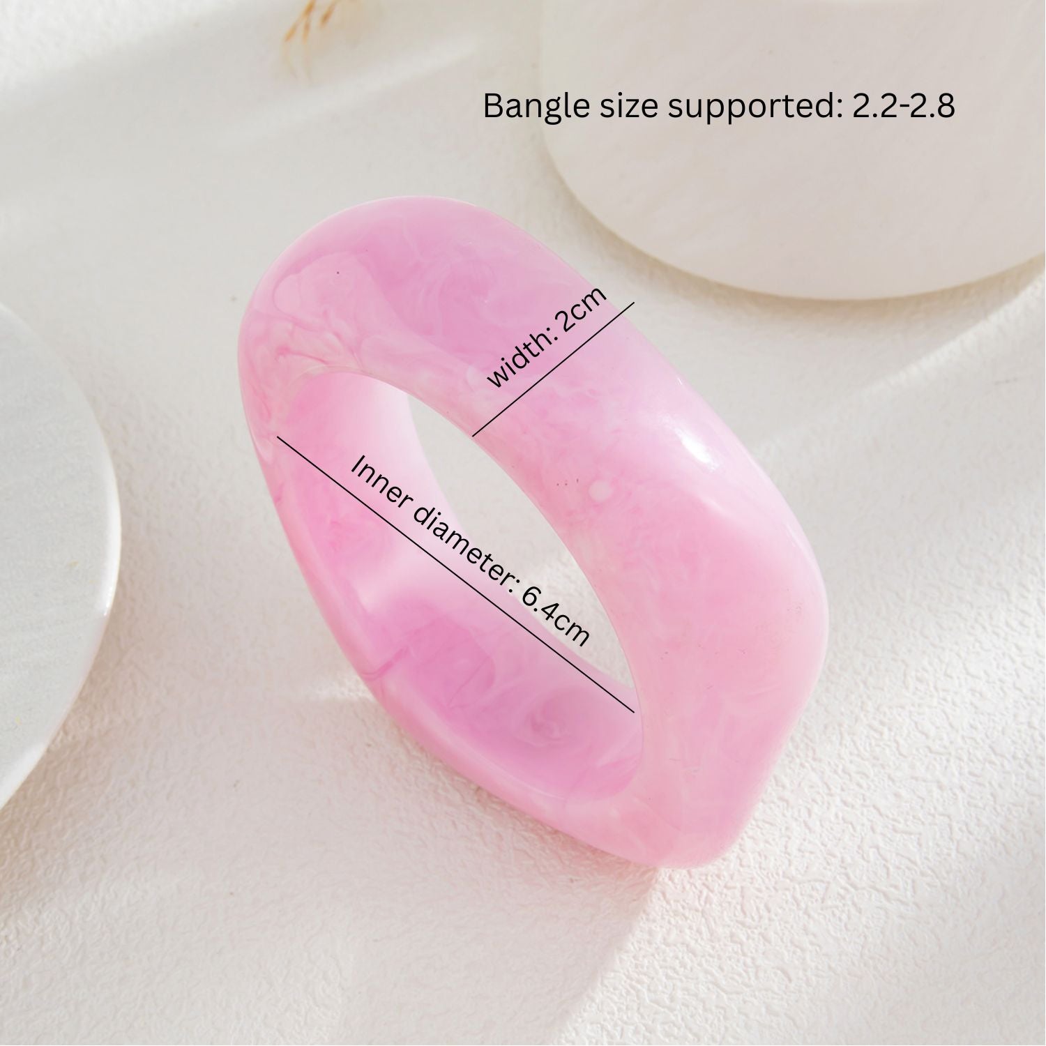 - Inner Diameter: 6.4cm, width: 2cm, Bangle size supported: 2.2-2.8