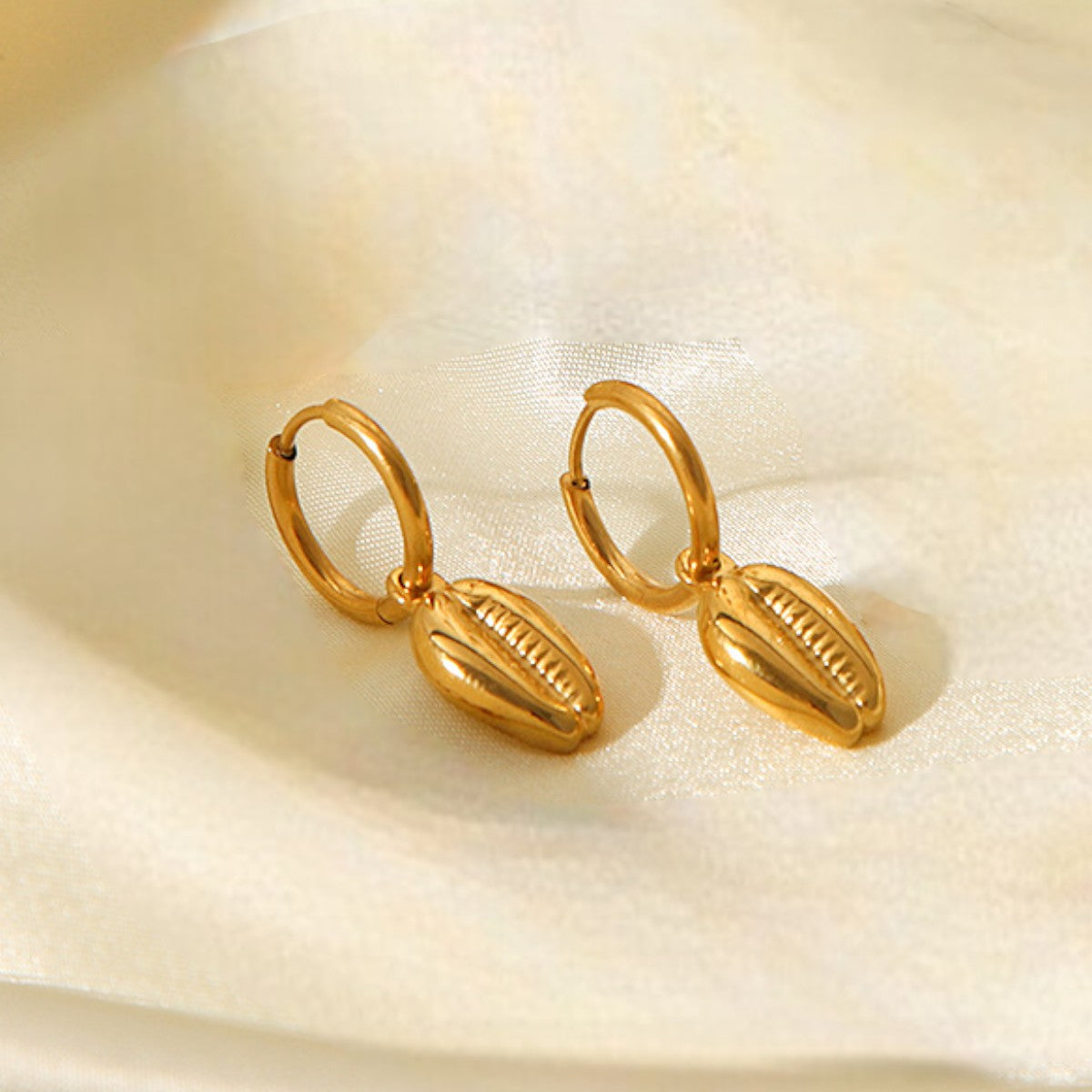 Calypso Cowrie Drop Huggies | 18K Plated