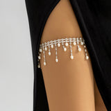 This silver-plated thigh chain with faux pearls and rhinestones exudes elegance, making it the perfect accessory for parties, weddings, and celebrations.