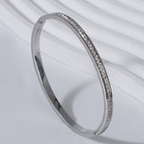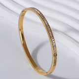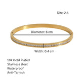 This 18k plated bracelet, adorned with channel-set zircon stones, offers timeless elegance and durability, making it perfect for everyday wear or special occasions.