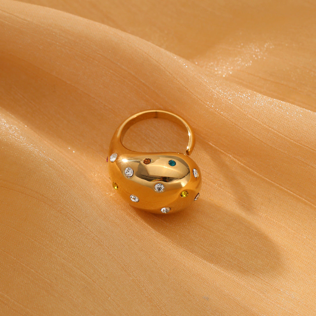 Chunky Multicolor Encrusted TearDrop Ring | 18K Plated