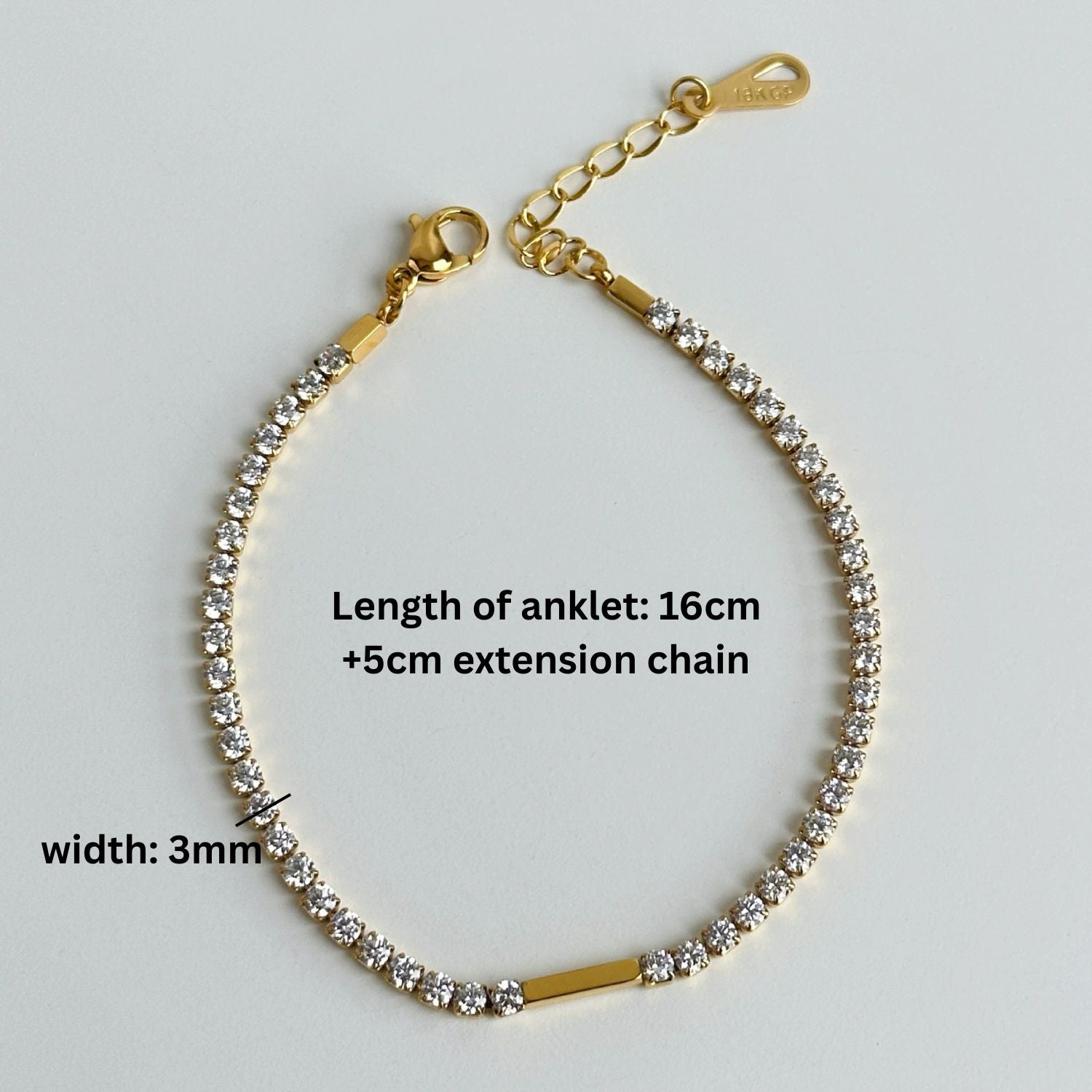 Classic Tennis Anklet| 18K Plated