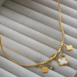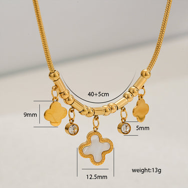 This dreamy necklace features a delicate clover charm paired with zircon drops, blending minimal elegance with just the right sparkle. It is 18K plated and anti-tarnish, providing lasting shine and durability. Perfect for daily wear or as a lucky charm on special occasions.