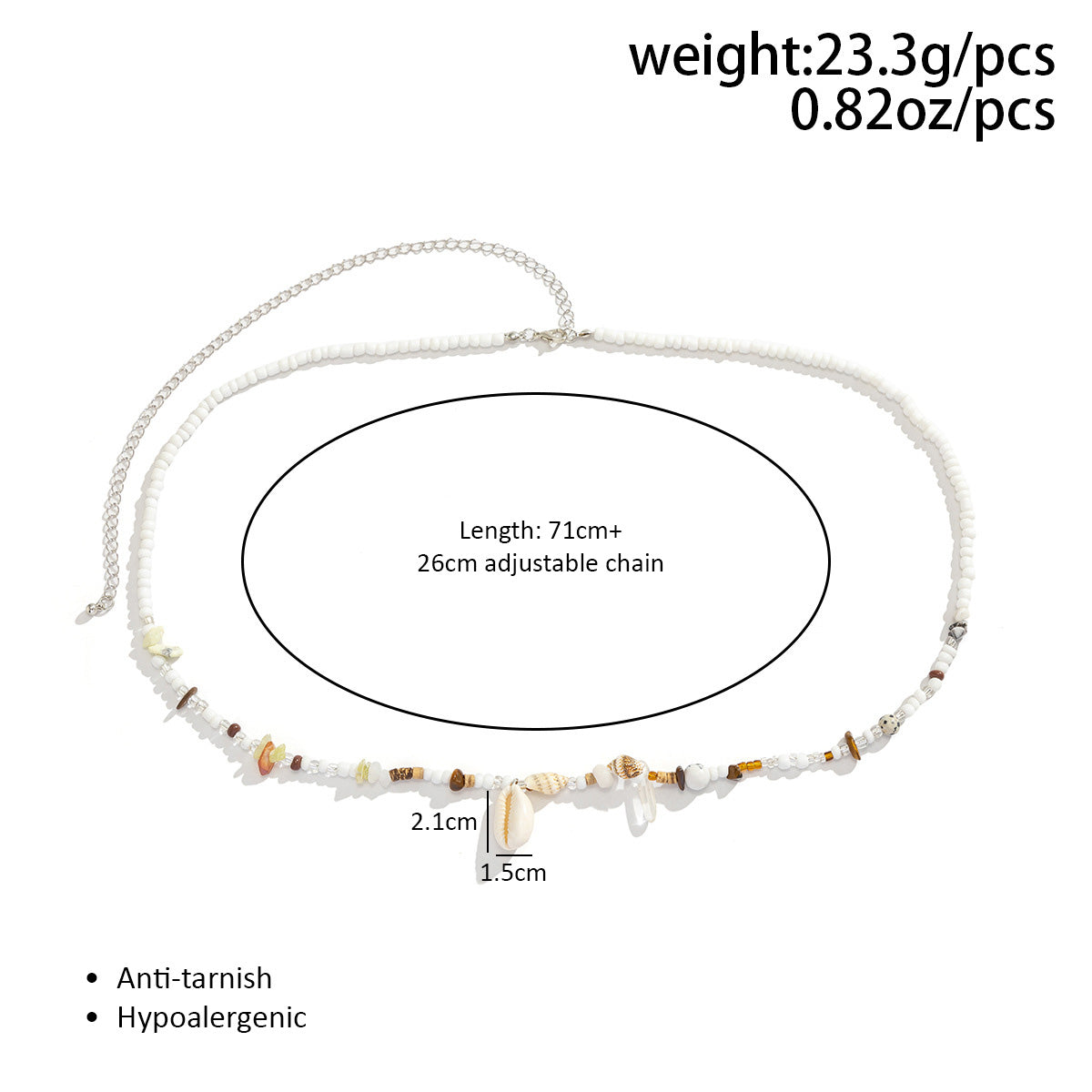 - Waist chain length: 71cm+adjustable chain-26cm,shell design l:2.1cm,w-1.5c