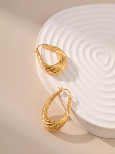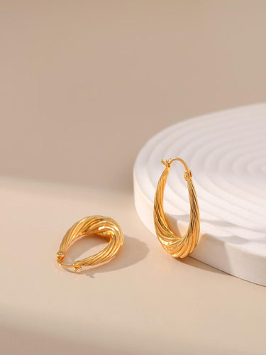 These 18K gold-plated hoops feature a folded design, offering a modern, elegant look with durability.