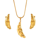Your morning coffee’s favorite accessory. The Croissant Pendant Set brings the perfect blend of French-girl chic and golden glam with its delicately sculpted crescent shape. Plated in radiant 18K gold and built to be waterproof and anti-tarnish, it’s ready to rise and shine with you—from sunrise strolls to golden hour gatherings. Whether layered with your dainty chains or styled solo for that quiet luxury look, this piece adds a playful yet polished twist to any outfit. Oui, it’s that good.