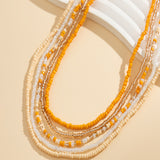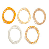 Chase sunsets, wear the glow! With warm tones of orange, gold, and white, this stretchable beaded waist chain set brings that golden hour magic to your look. Style them with flowy skirts or beach cover-ups and get ready to turn heads from sunrise to bonfire