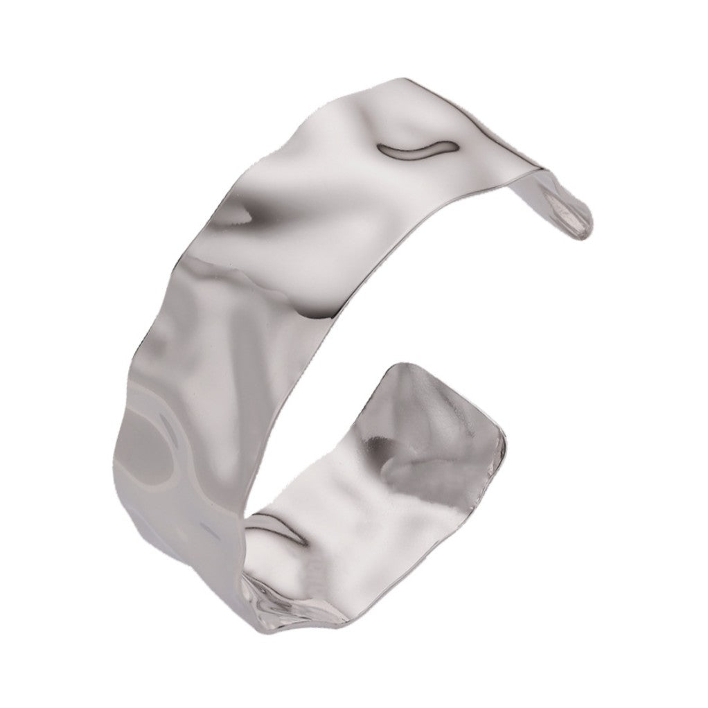 Upgrade your style with this 18K gold/silver-plated bold mini hammered cuff bangle, designed to make a bold yet elegant statement.