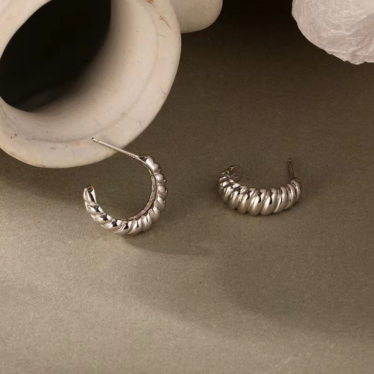 Double the Style. A modern take on classic hoops, these spiral croissant type hoops add a delicious twist of drama and shine to any outfit. With their modern curves and glossy finish, they’re the statement earrings you didn’t know you needed—perfect for dressing up your brunch fits or making everyday looks extra delicious.