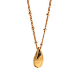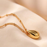 This elegant 18K gold-plated pendant, shaped like a seed drop, combines charm and durability.