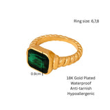 Crafted with a twisted gold-toned band and a bold green glass stone, the Emerelle Green Stone Ring is all about vintage elegance with a modern twist. Its sculpted detailing and timeless silhouette make it the perfect standout piece—stacked or solo.