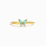 A delicate and dreamy ring showcasing a sparkling butterfly made of green zircon stones. Whether you’re vibing solo or stacking it up, this one always hits right.