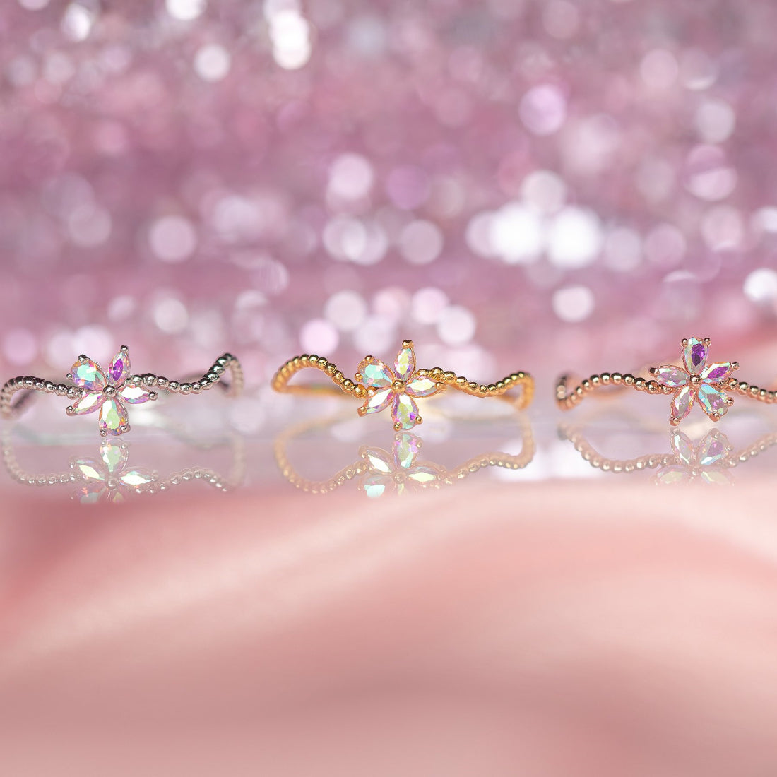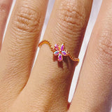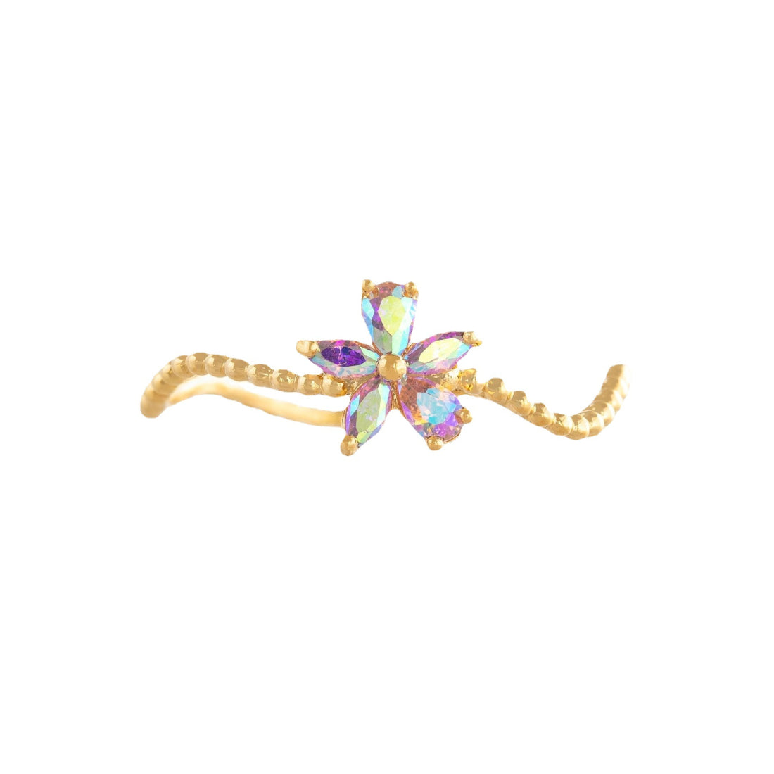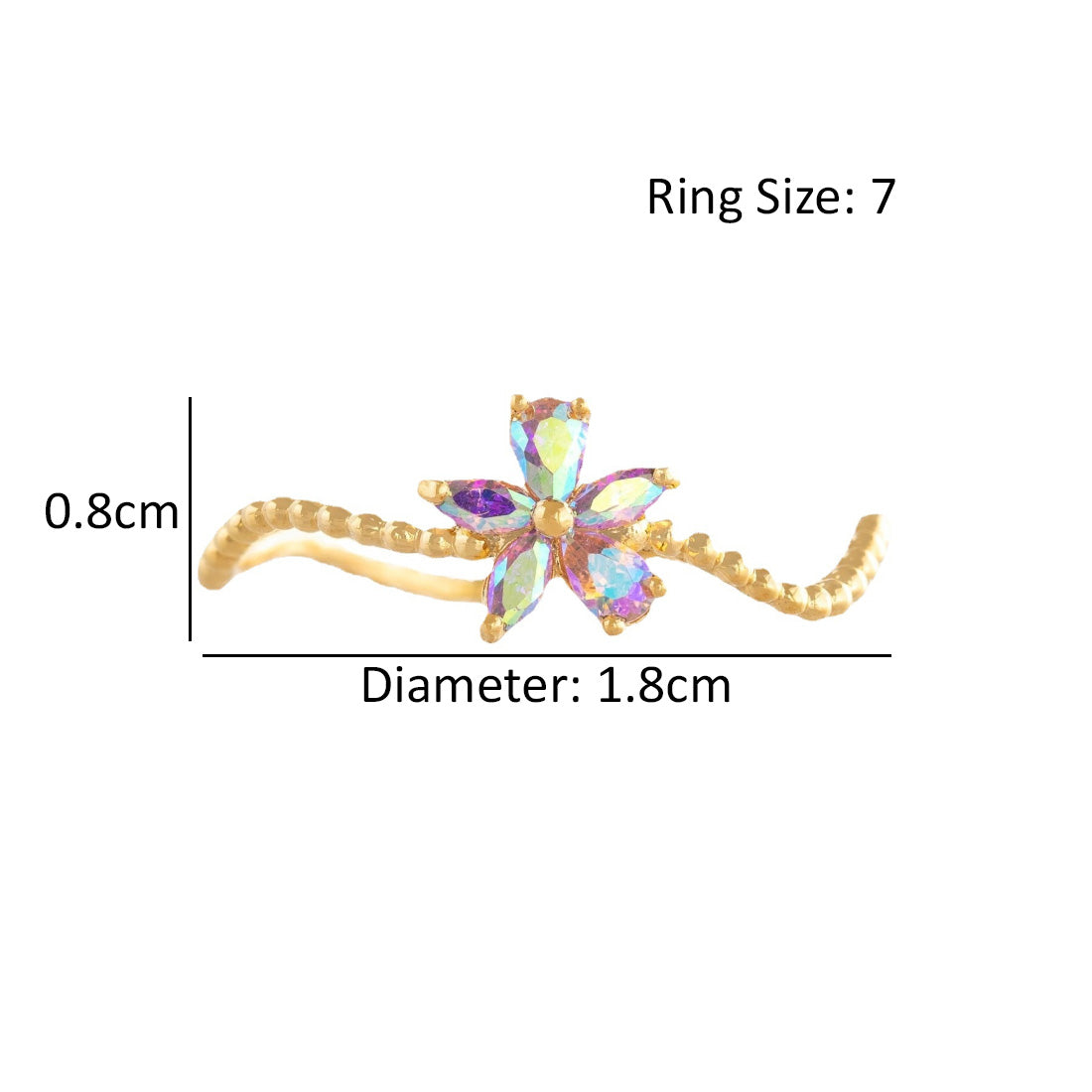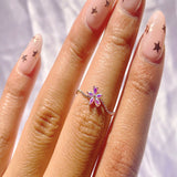 Floral and cute, this beautifully crafted ring features a wavy floral design, delicately adorned with shimmering pink and white zircon stones. Perfect ring to add to your Y2K collection.