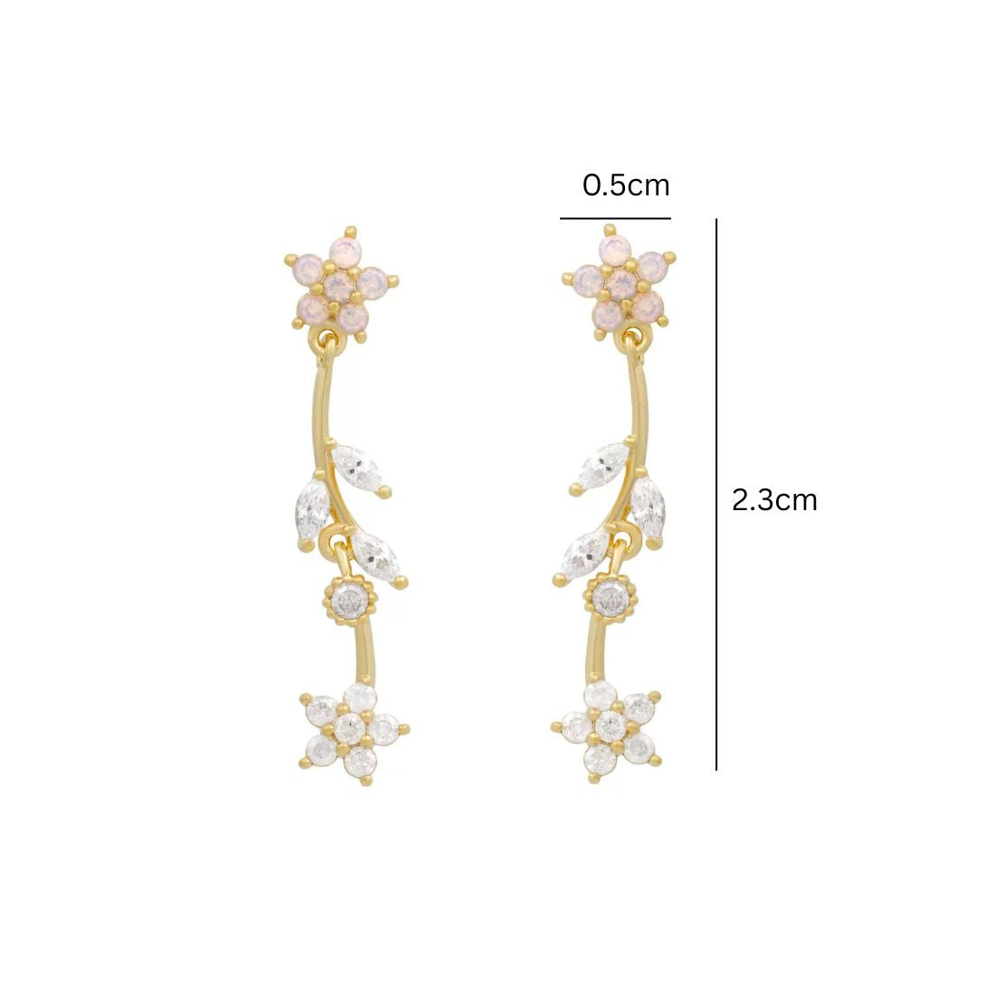 Whimsical yet refined, Floriette Pink Floral Drops is a poetic cascade of blooming charm. Crafted with soft pink and radiant white stones, these earrings trace the silhouette of a delicate vine in full blossom. The floral clusters and marquise-cut crystals glisten with every turn, making Floriette the perfect statement piece for romantic evenings, garden parties, or when you simply want to feel effortlessly graceful.