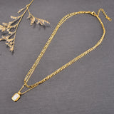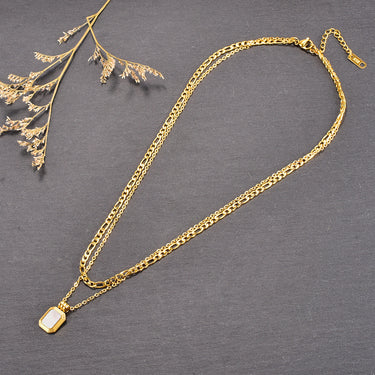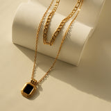 Give your style an effortless upgrade with this modern necklace featuring a white shell/ black onyx pendant and double-layered chains. Whether you're keeping it casual or dressing up for a special occasion, this necklace adds just the right touch of beachy elegance and chic to your outfit.