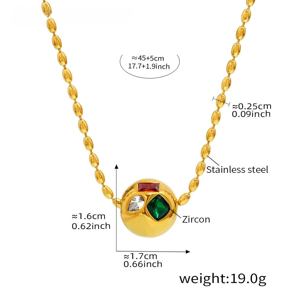 The 18K Gold Plated Multicolor Zircon Embedded Pendant Necklace is a vibrant statement piece designed to add a pop of color and sparkle to any outfit. Featuring a striking pendant adorned with multicolor zircon stones, this necklace blends elegance with a lively, festive charm. Crafted from 304 stainless steel, vacuum-plated with three layers of 18K gold for lasting shine and durability. Perfect to pair with both traditional and western looks, it brings an effortless party-ready vibe. A thoughtful gift for women and girls who love colorful jewelry and stylish chains.