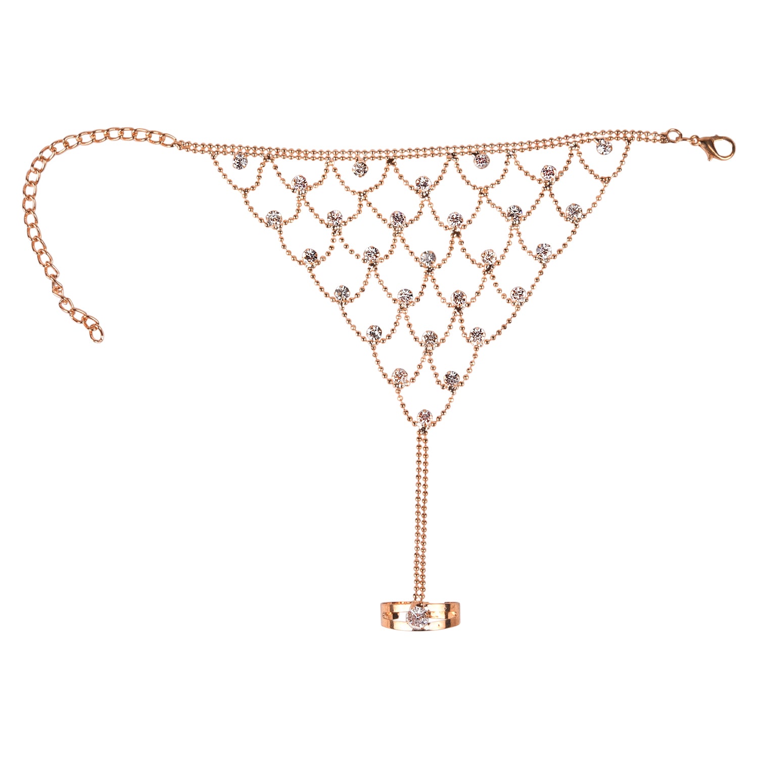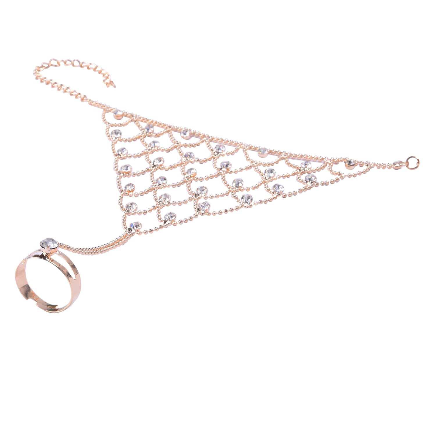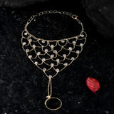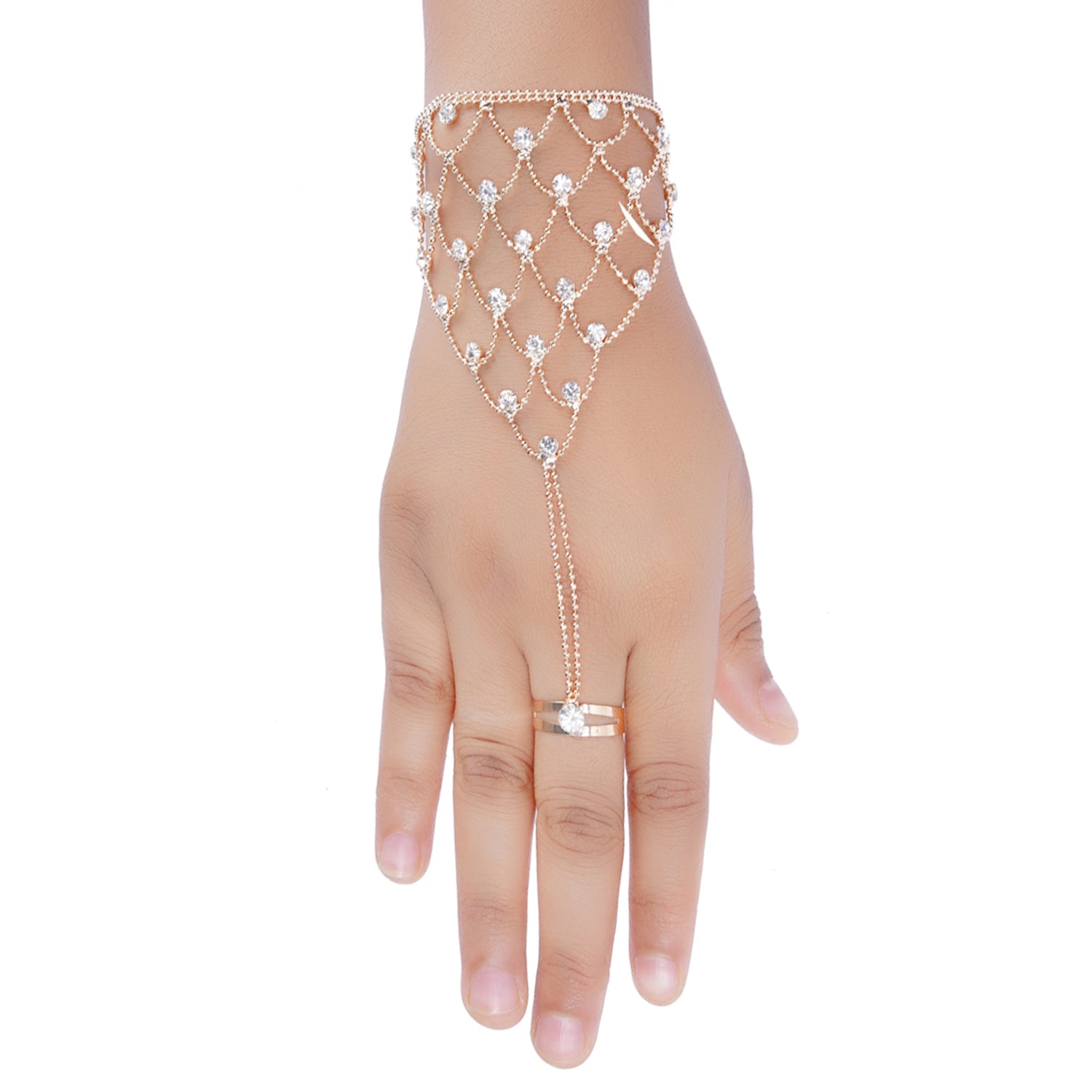 Enhance your look with silver-plated chain ring bracelet with rhinestones. Elegant and lightweight that pairs effortlessly with indian and party outfits.