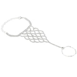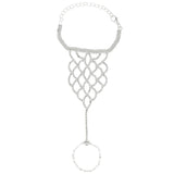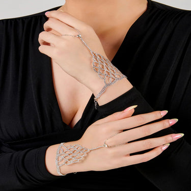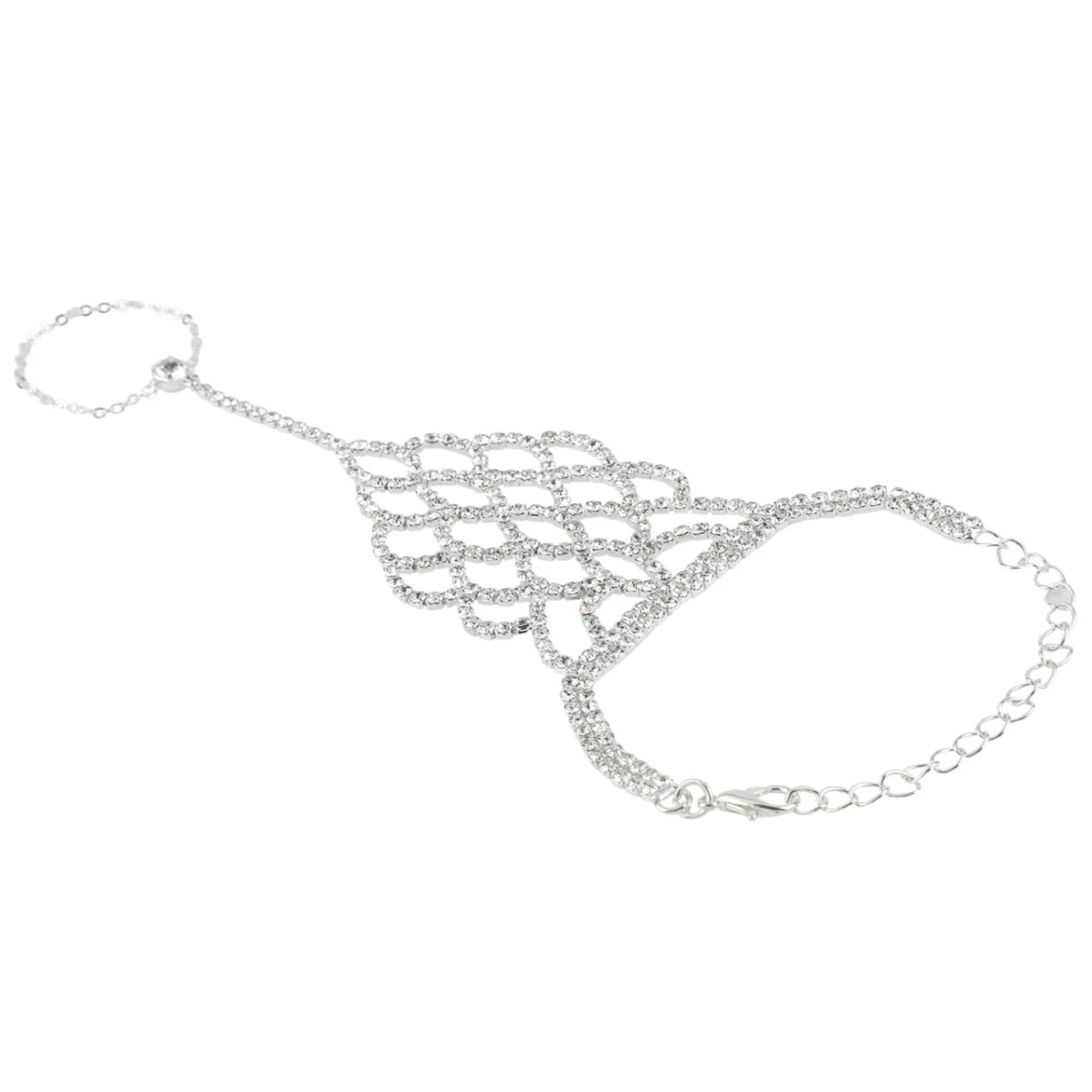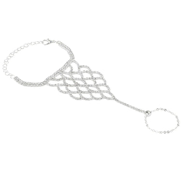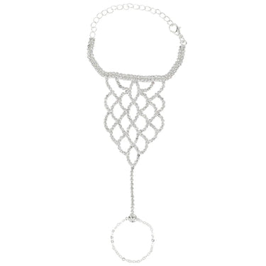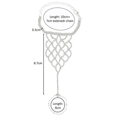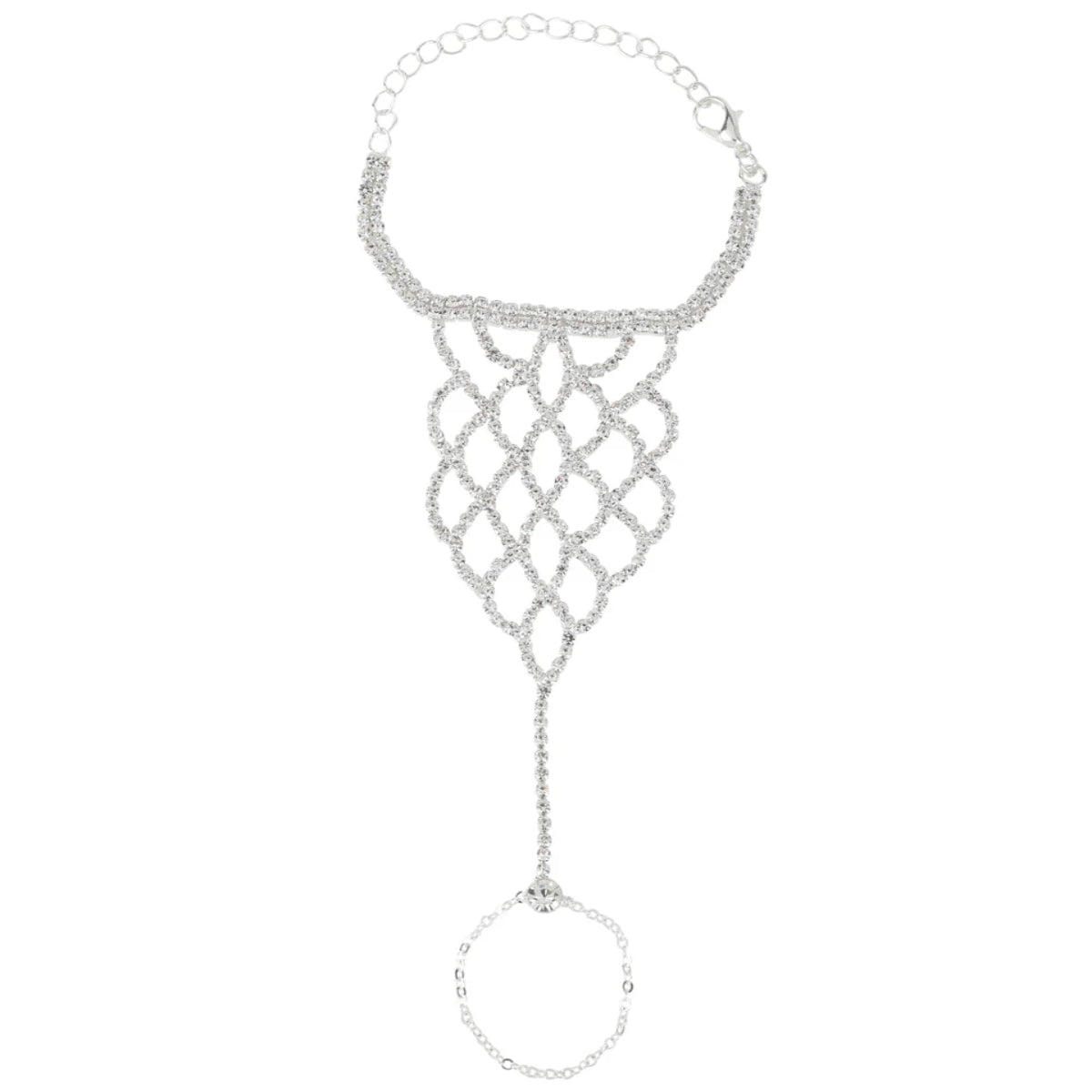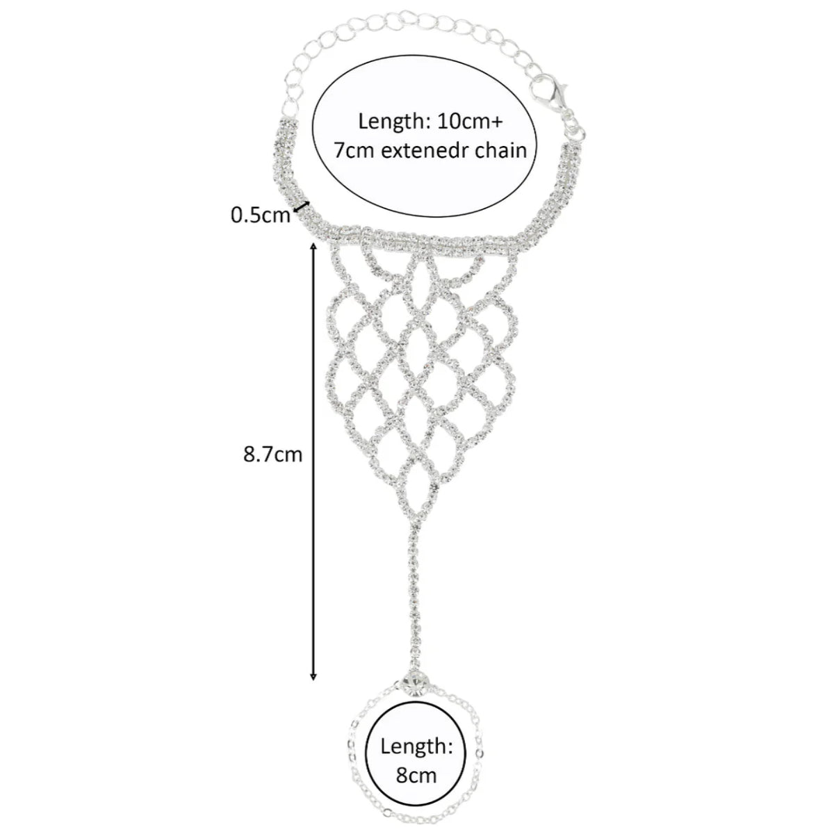 Enhance your look with silver-plated chain ring bracelet with rhinestones. Elegant and lightweight that pairs effortlessly with indian and party outfits.