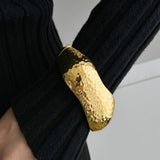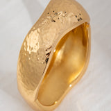 This statement open bangle brings all the drama—in the best way possible. With its bold, hammered texture and radiant gold-plated finish, it catches the light and the compliments. It’s the kind of piece that instantly elevates your look—whether you’re styling up a sundress or leveling up your evening glam.