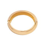 Turn heads with this glossy bold open bangle bracelet, crafted in radiant gold plating for a powerful statement look. Its chunky cuff style and smooth, polished finish bring a touch of drama to any outfit, from casual chic to evening glam. Made with anti-tarnish metal, it retains its shine and color even with frequent wear. The open design ensures a flexible fit for most wrist sizes while offering easy styling. Perfect for women and girls who love standout accessories that exude confidence and bold elegance.