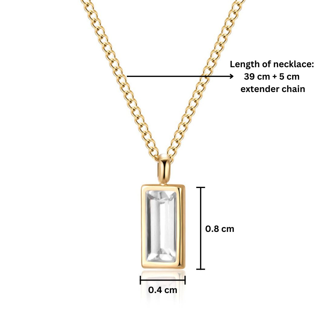- Length of chain = 39 cm + 5 cm adjustable, pendant= 0.8x0.4x0.4 cm