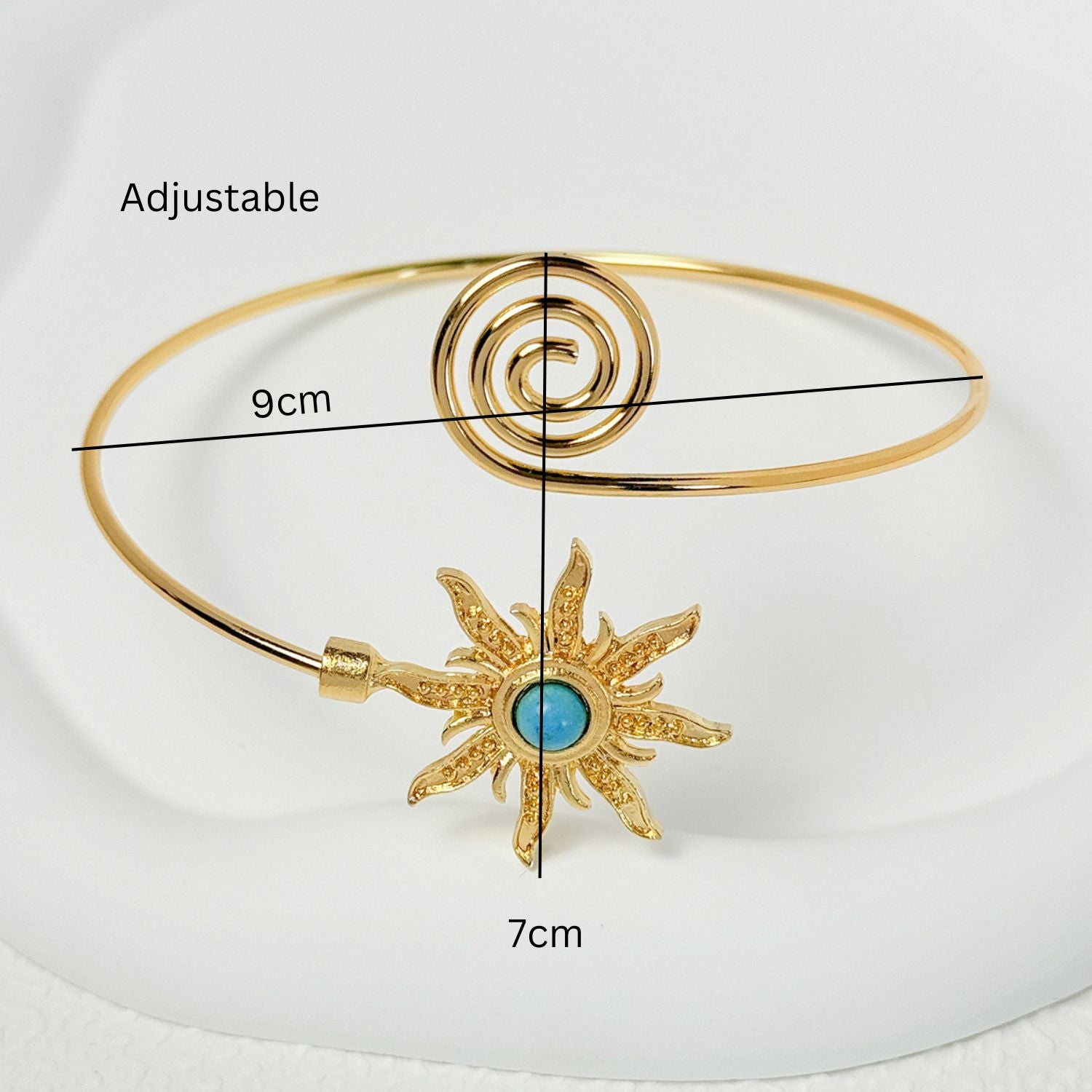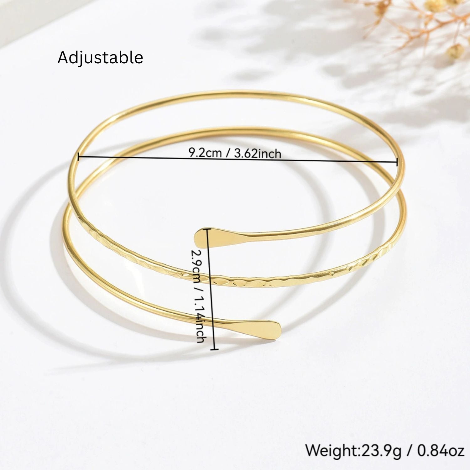 Elevate your style with this stunning adjustable arm cuff, designed to wrap beautifully around your upper arm with a chic, boho-inspired touch. Crafted with intricate detailing and a comfortable open-ended design, it effortlessly blends elegance with bold statement energy. Whether you’re dressing up for a festive look, a beach vacation, or adding flair to everyday outfits, this versatile piece enhances every silhouette with ease. Lightweight, skin-friendly, and easy to adjust, it sits securely while offering all-day comfort and glam.