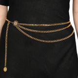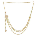 A stunning multi-layered golden alloy waist chain, perfect for adding a touch of elegance and glamour to any outfit.