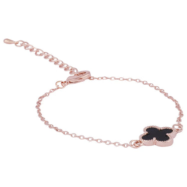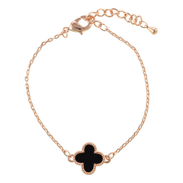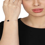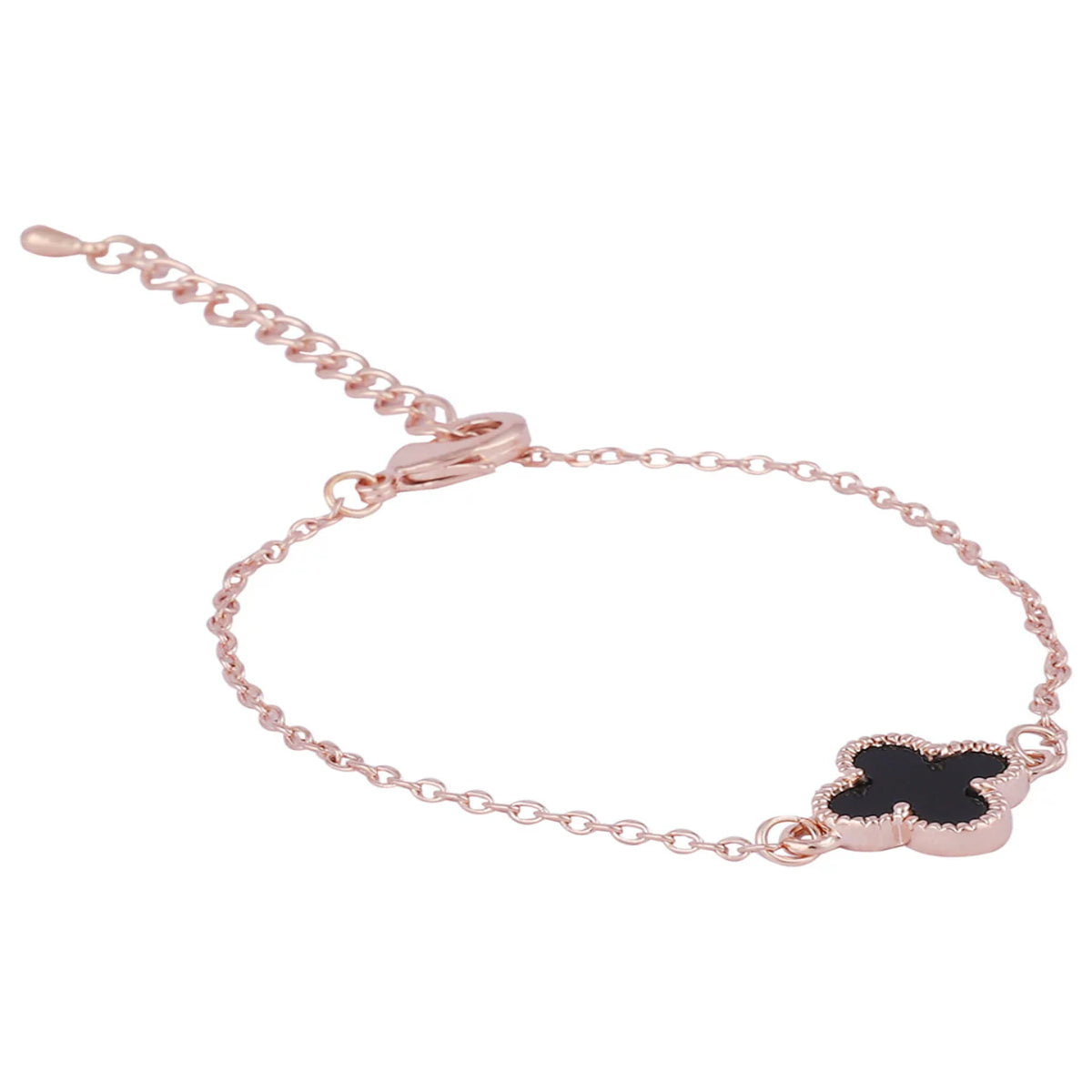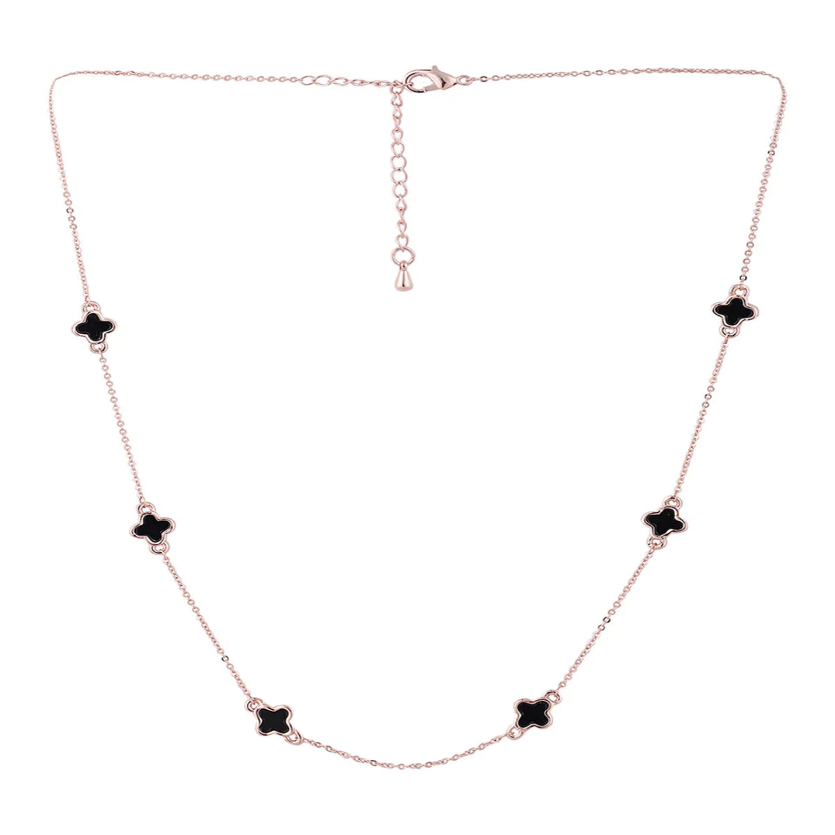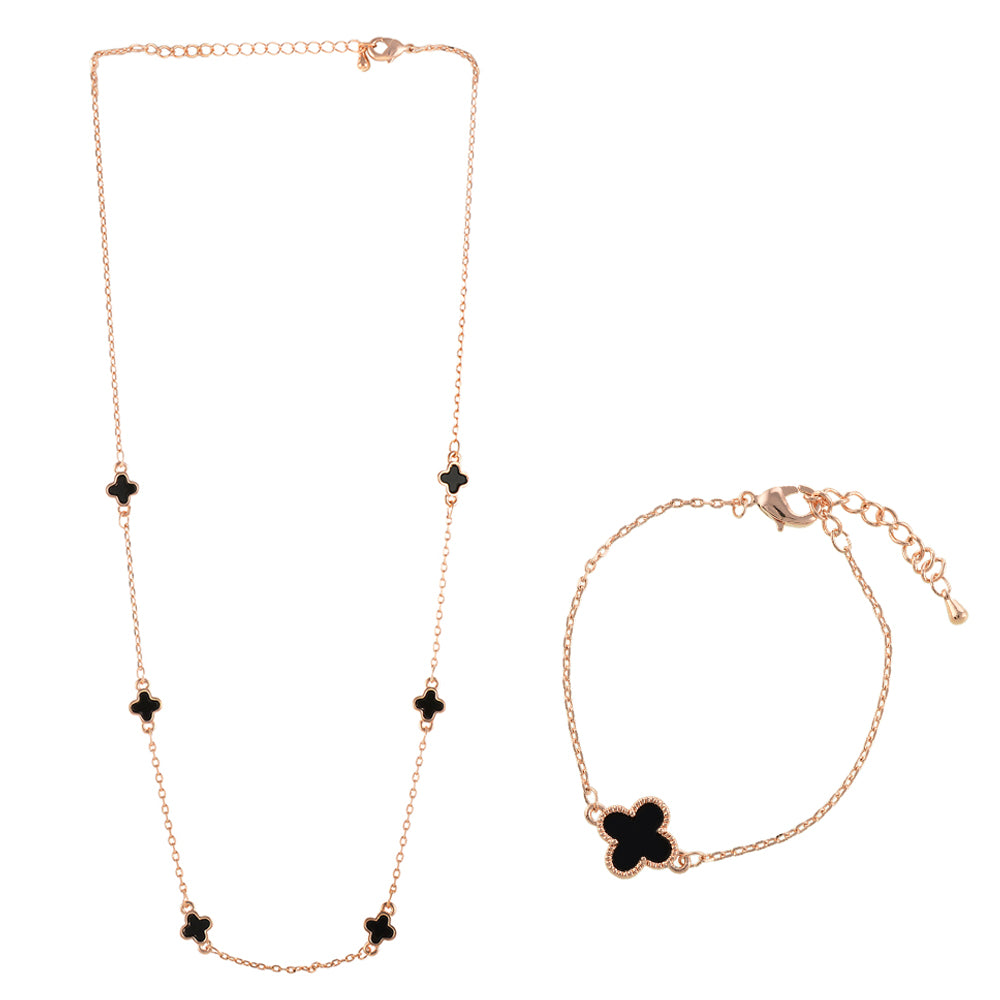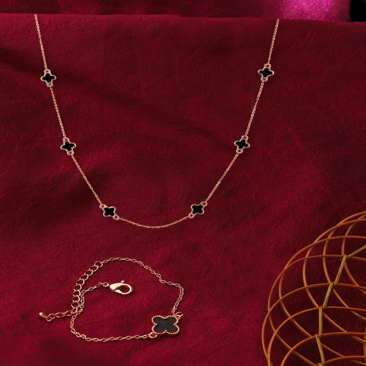A chic black clover necklace and bracelet set with a modern touch, perfect for adding elegance and charm to any outfit.