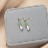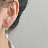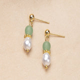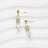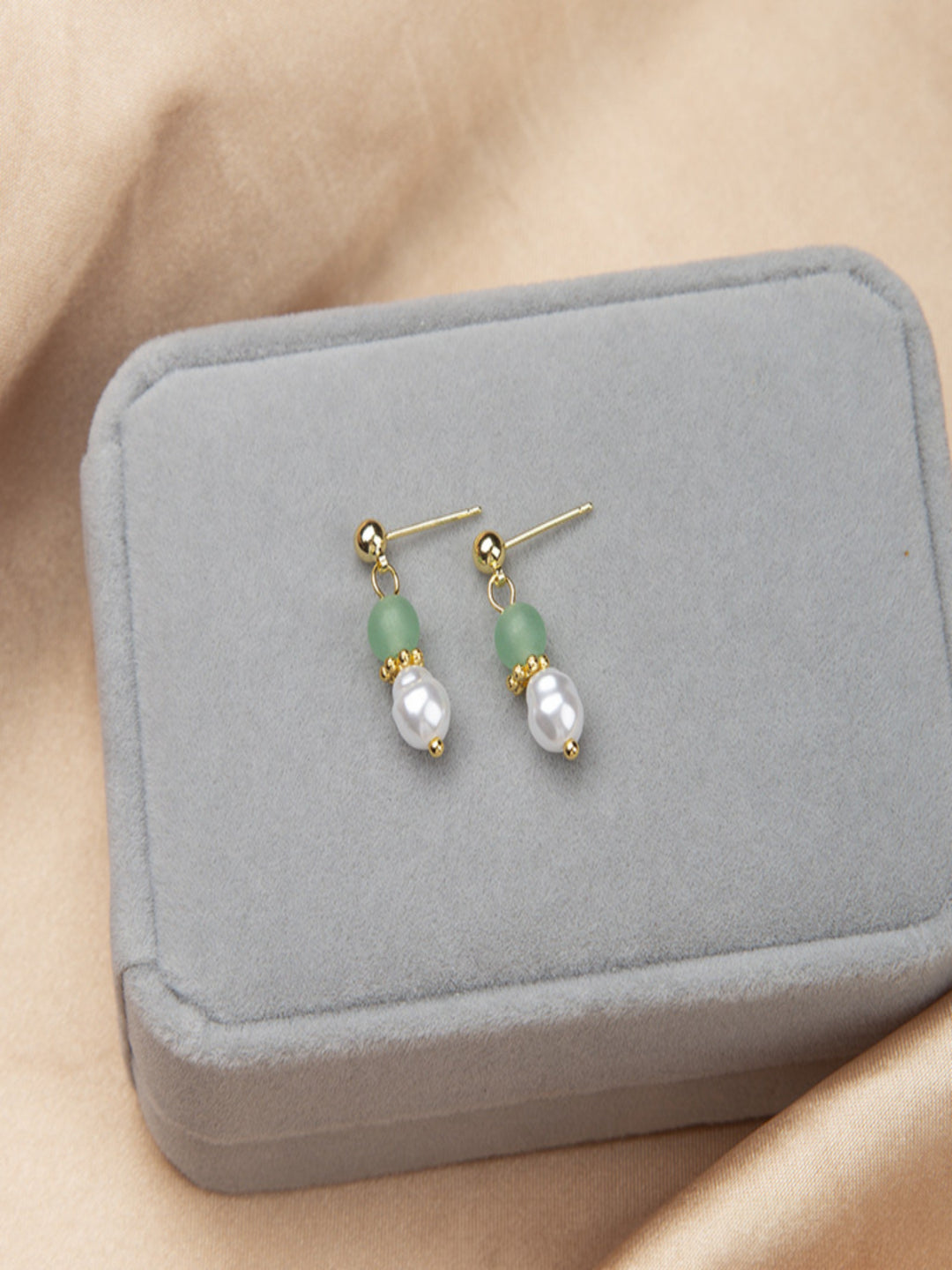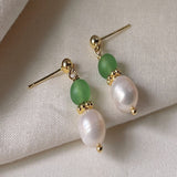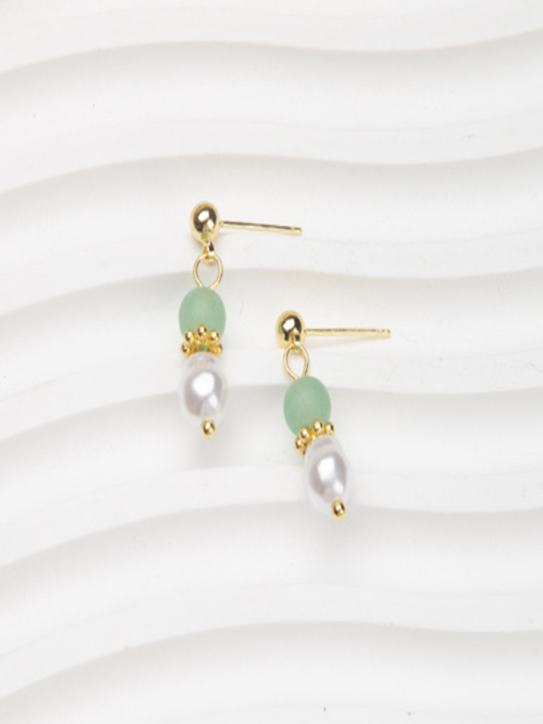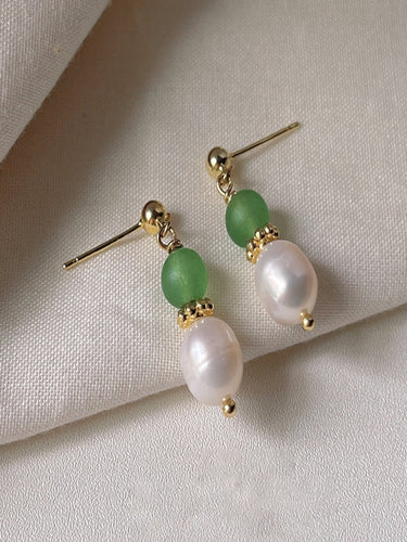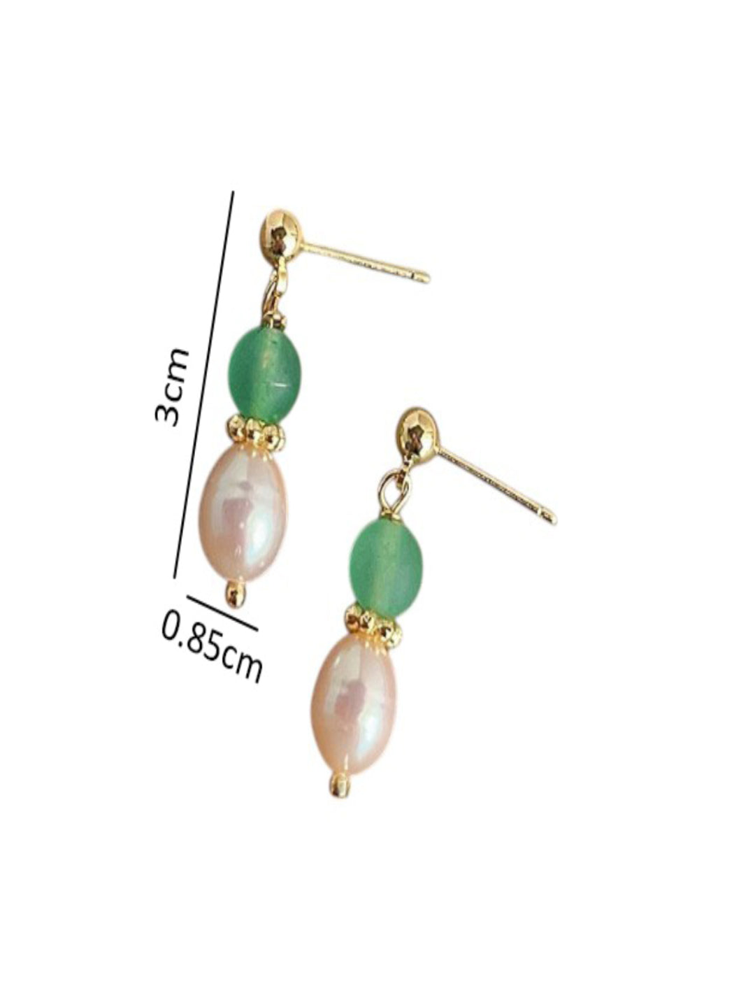 Pearls and Pretty Vibes! Add a pop of color and a touch of elegance to your style with these green and white pearl drop earrings. Perfect for those who love a little bit of whimsy with their glam.