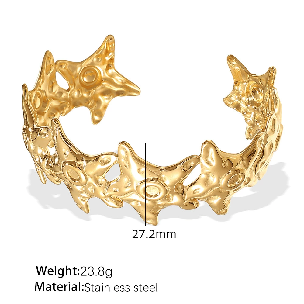 Hammered Star Cuff Bracelet| 18K Plated