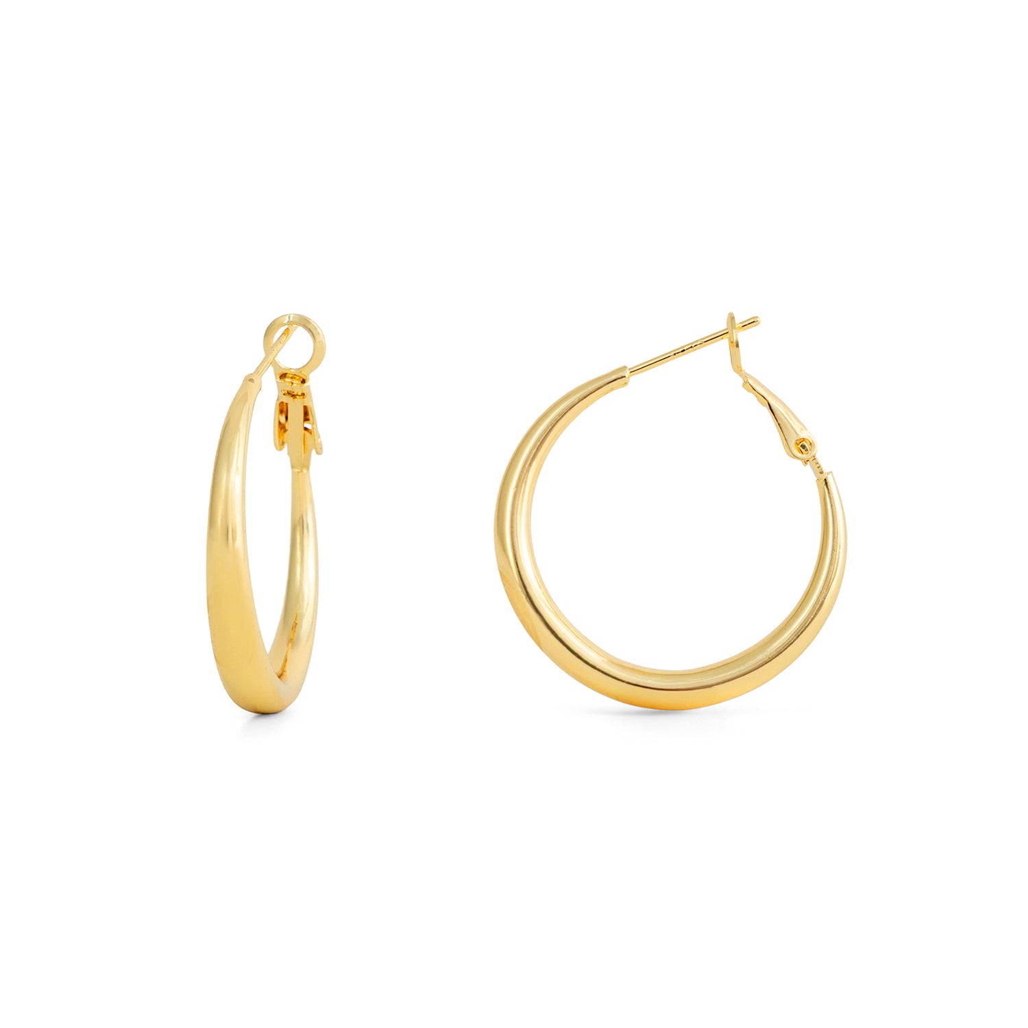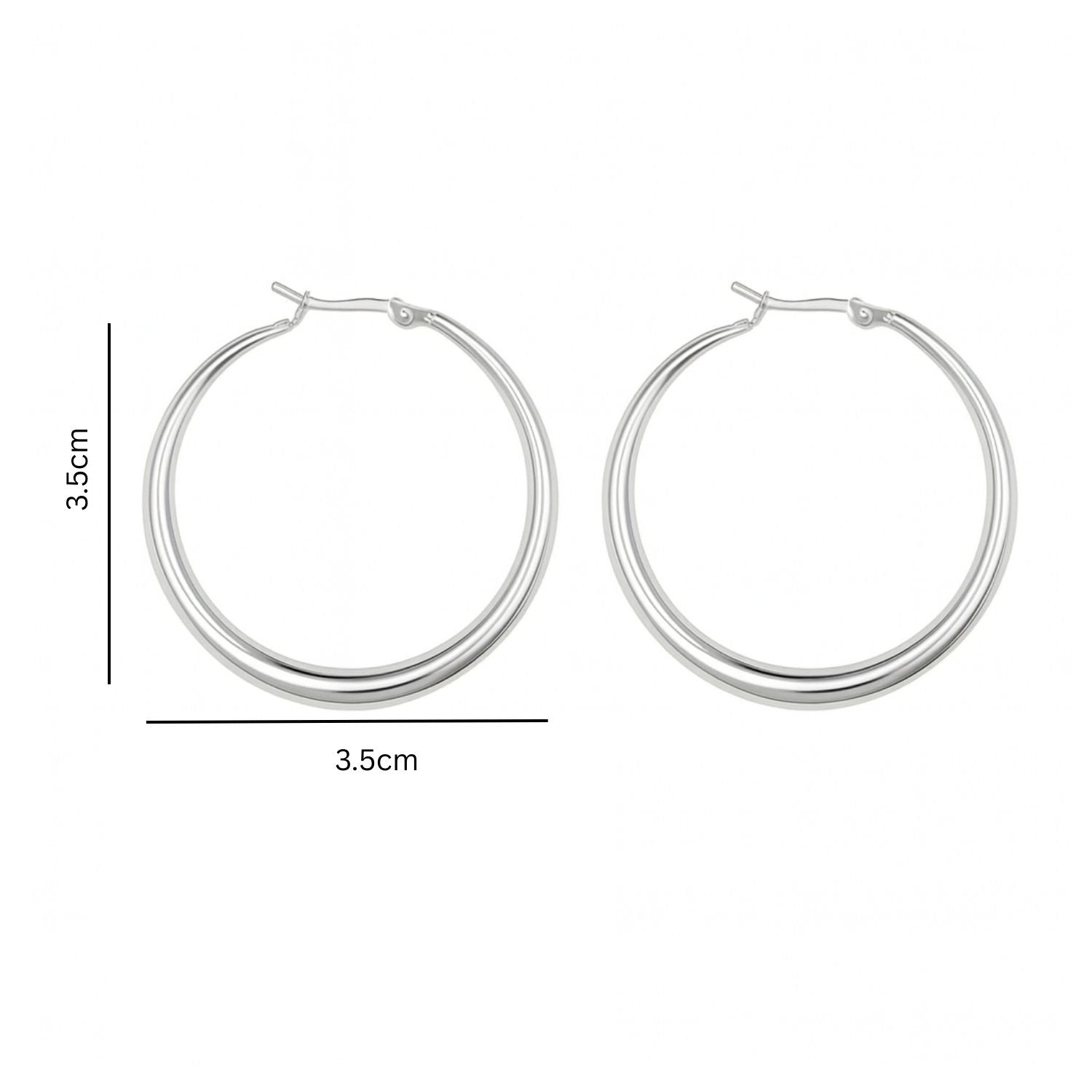 Classic Round Hoops crafted in a smooth, polished finish for a clean and timeless look. Lightweight, waterproof, and anti-tarnish, they’re built for effortless everyday wear without losing their shine. Their minimal silhouette makes them a closet essential. Style them with denims, simple tees, or sleek updos for a chic, put-together vibe.