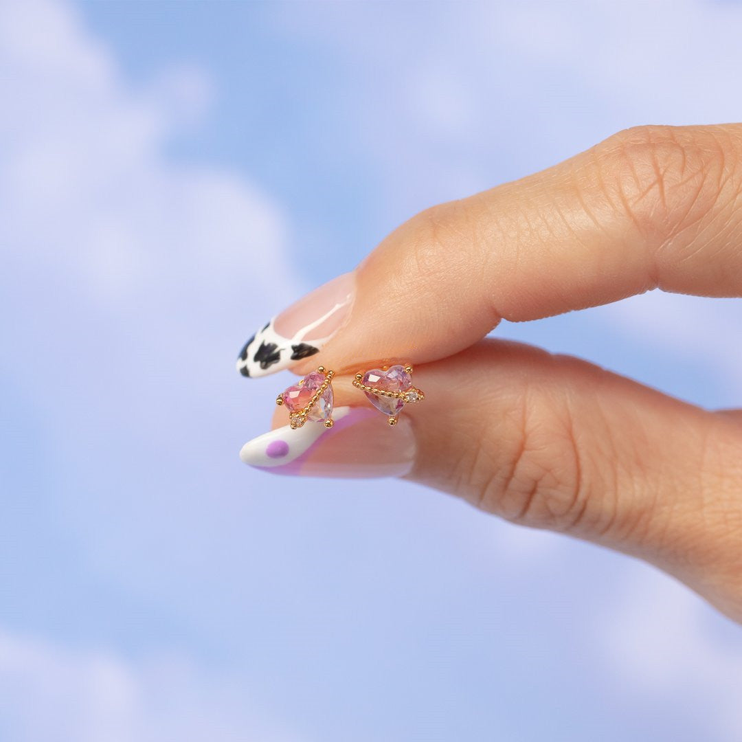 A romantic heart-shaped ring, designed with a unique "hug"" band and pink zircon accents. A gift that speaks love. Whether you’re vibing solo or stacking it up, this one always hits right.