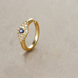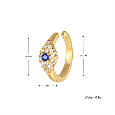 Protect your style with a hint of sparkle in this single 18K gold-plated zircon evil eye cuff earring. Designed with anti-tarnish durability, this minimal yet striking piece is perfect for everyday wear or as a standout addition to a curated ear stack. Lightweight and comfortable, it brings both charm and meaning to your jewelry collection.