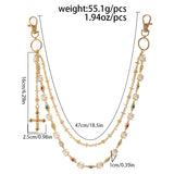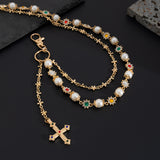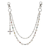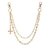 The Isolde Pant Chain is a lavish statement accessory that merges classic elegance with bold modern flair. Designed with lustrous pearls, vibrant gemstones, and a detailed cross pendant, it drapes in layered perfection to elevate any outfit. Clip it onto denim, trousers, or skirts for a look that balances opulence with rebellious edge.