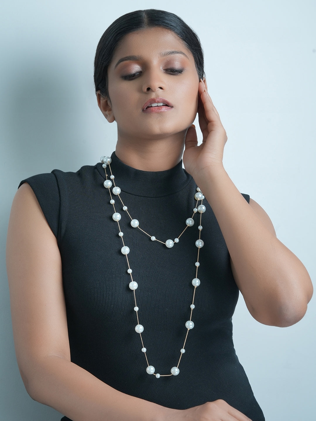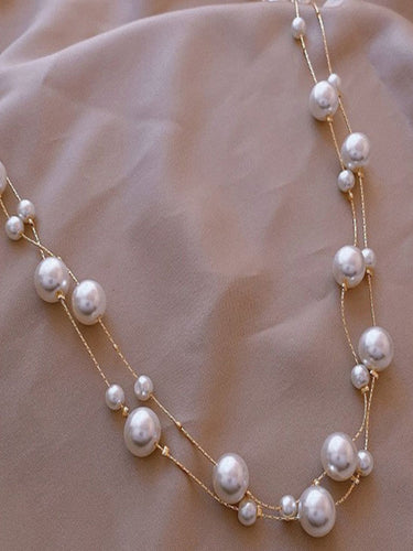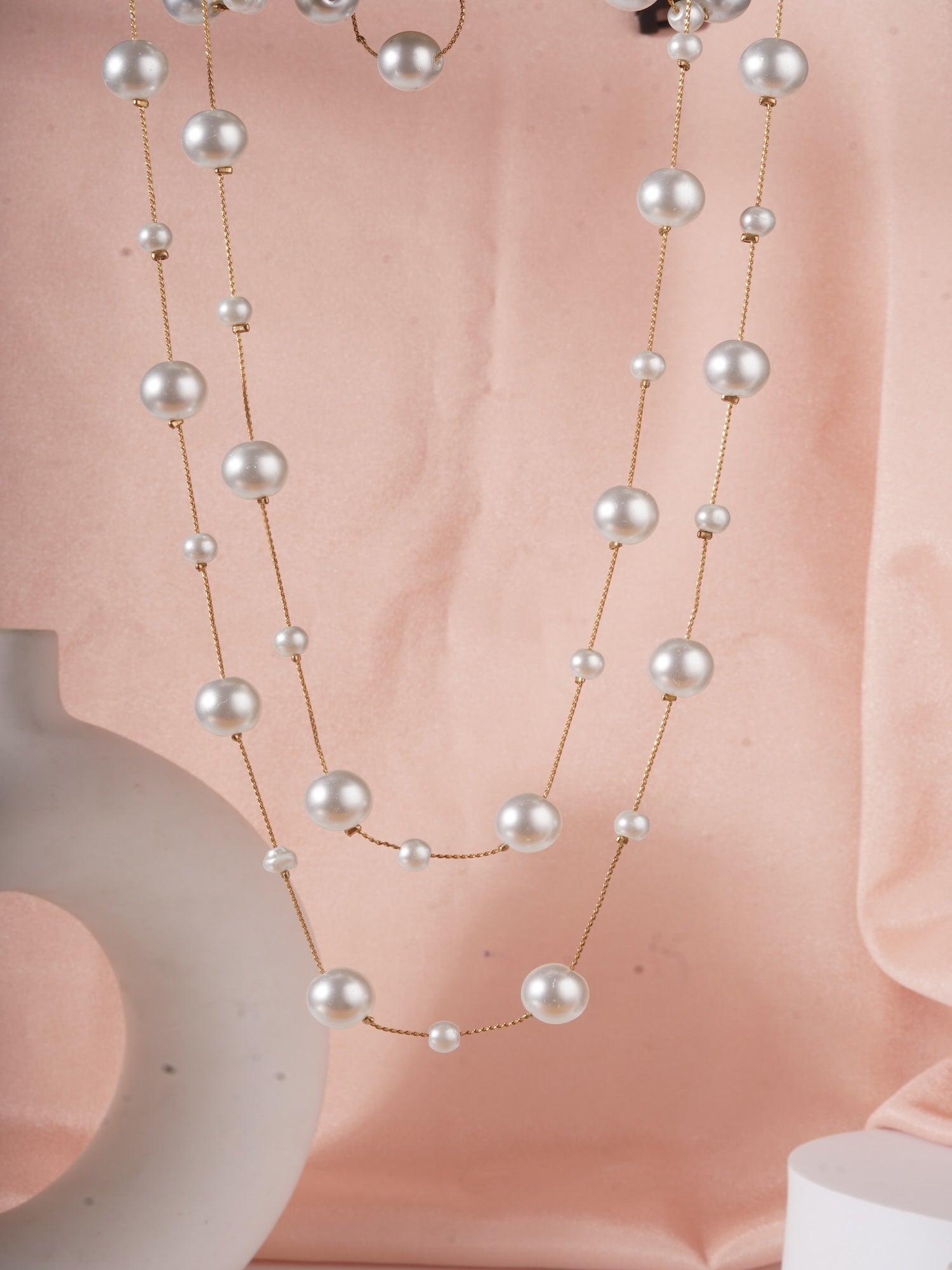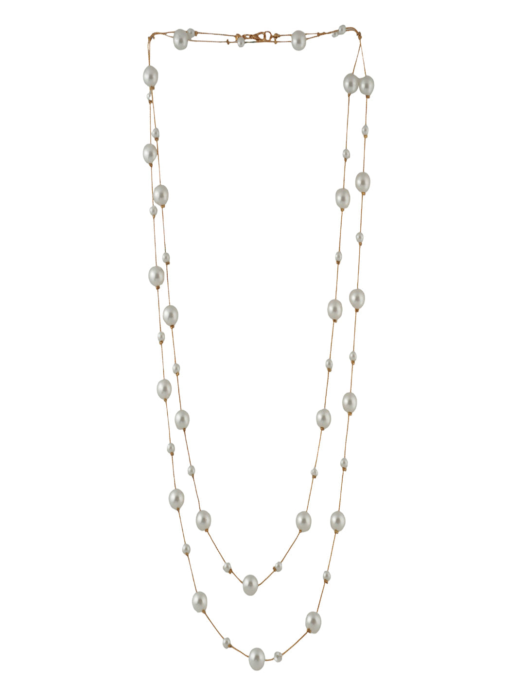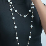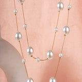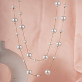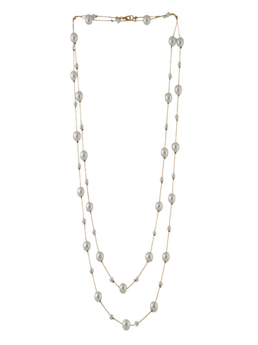 Iva Layered Long White Pearl Necklace