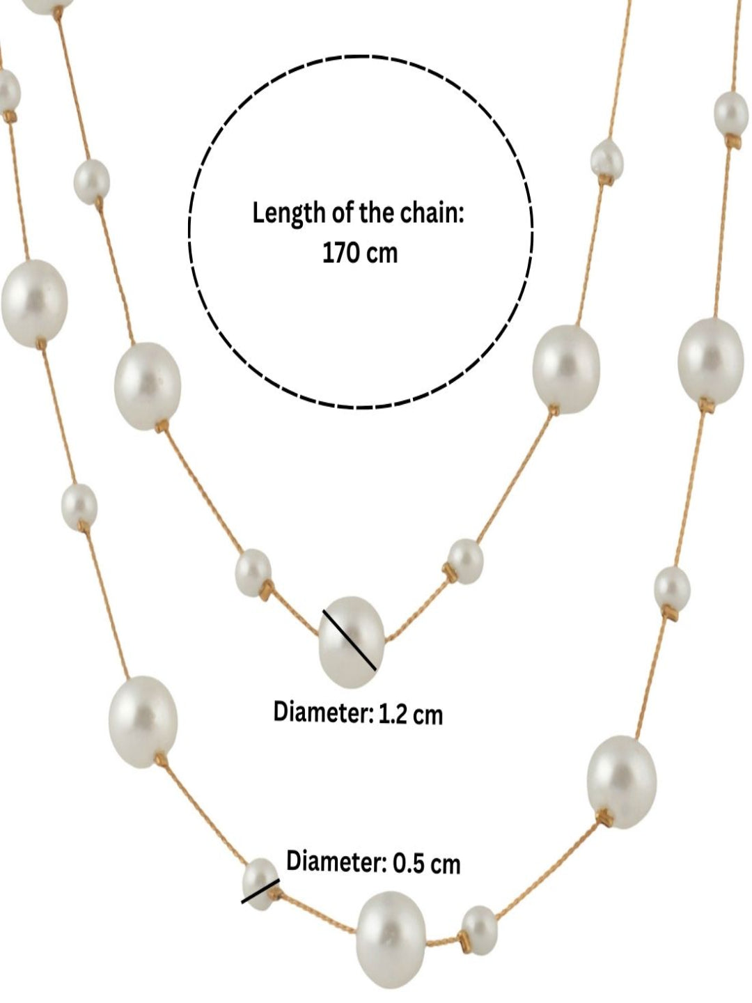 - Length of chain: 170cm, big pearl diameter: 1.2cm, small pearl diameter: 0.5cm