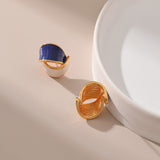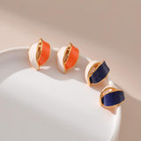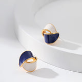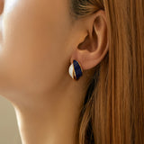 These 18K gold-plated blue n white studs feature a curvy design stud earrings that adds a pop of color to your outfit.