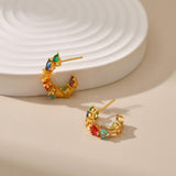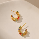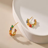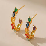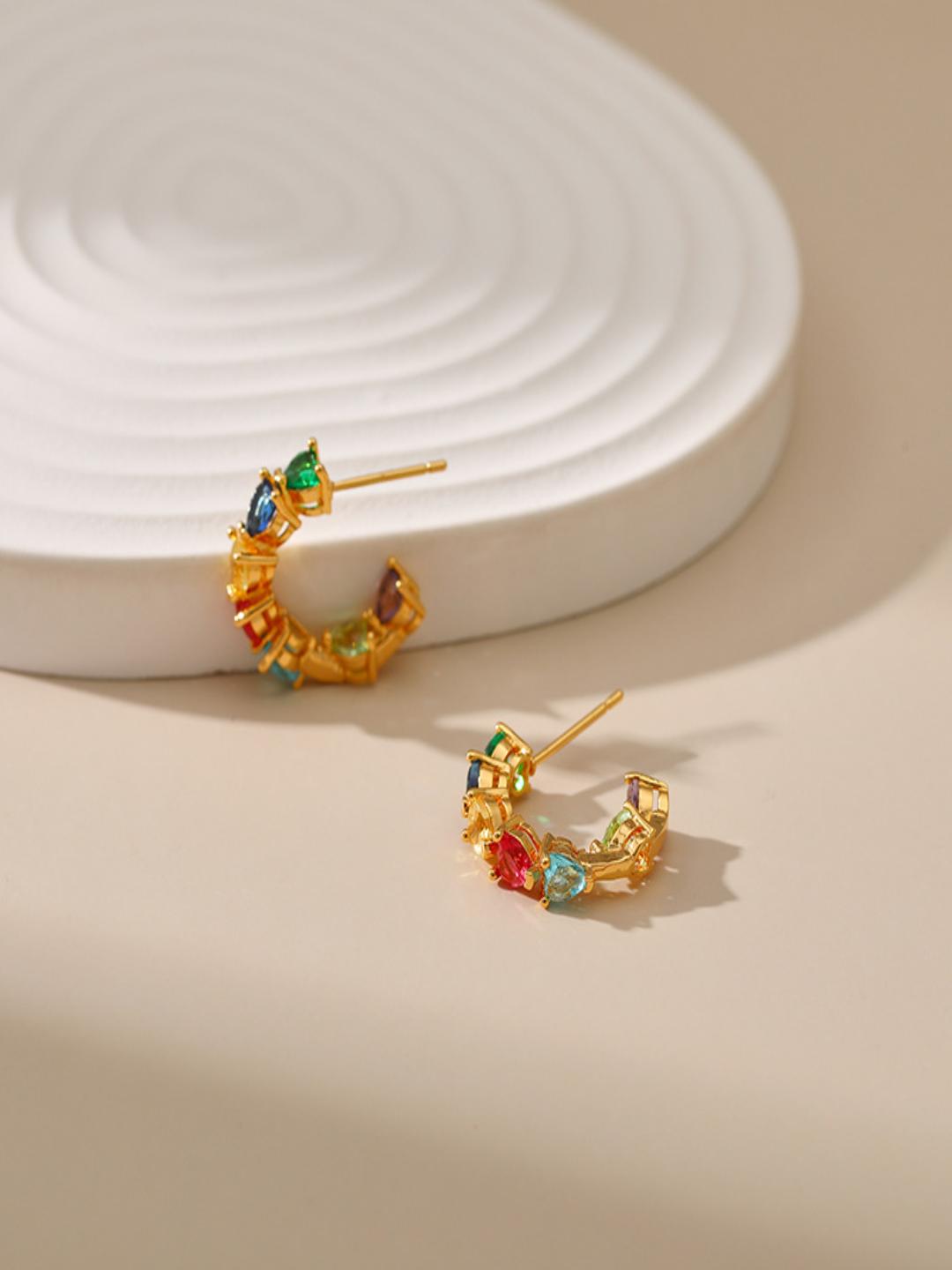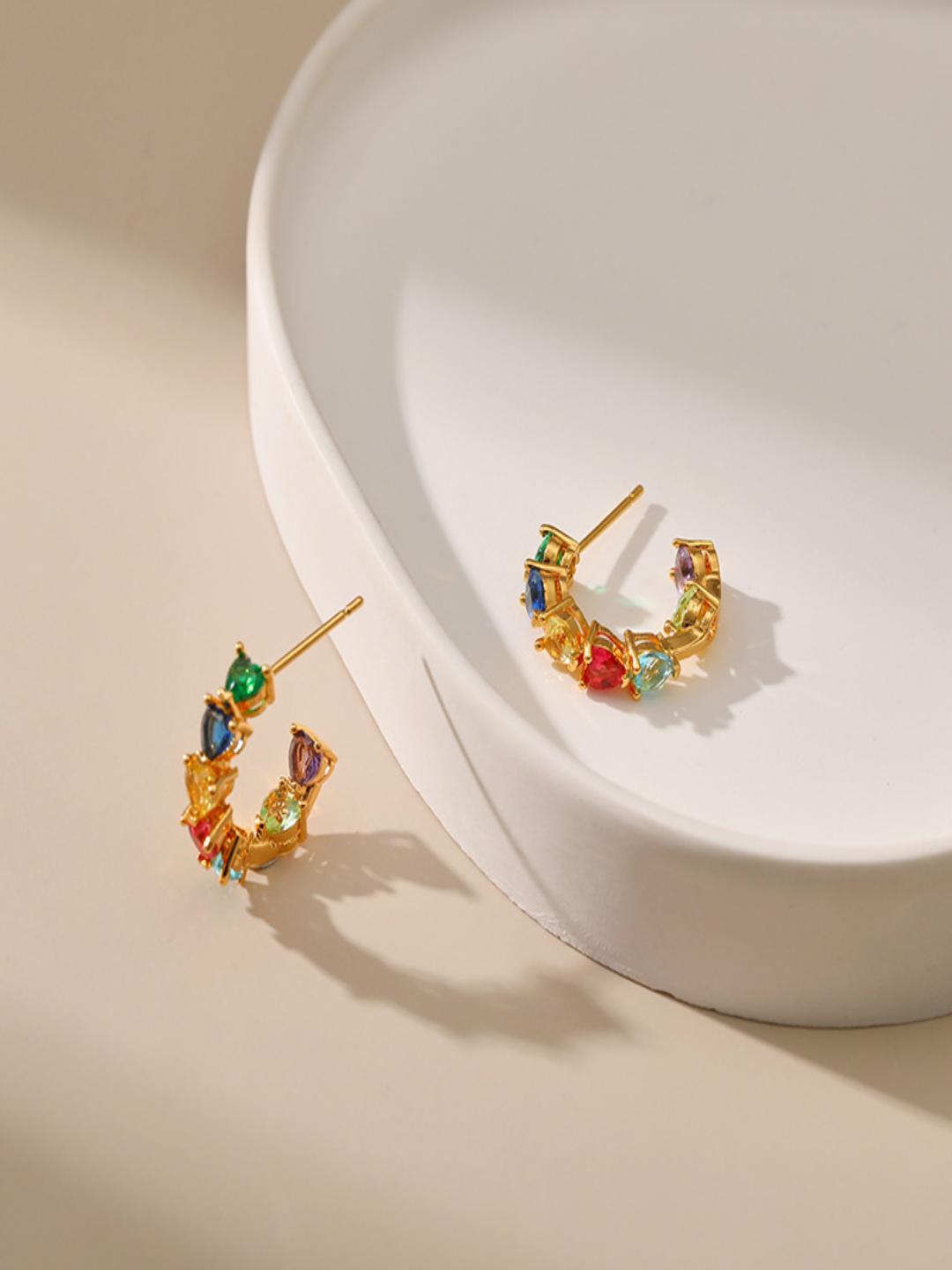 Vibrant multicolor zircons set in heart-shaped 18K gold-plated studs, perfect for adding glamour to any look.