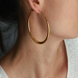 Make a statement with these 18K gold-plated big round hoop earrings, offering a bold yet elegant touch to any look. Lightweight and stylish, they are perfect for everyday wear or special occasions.