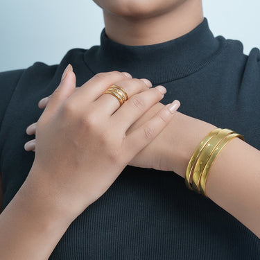 Make a statement with this 18K gold-plated bold cuff bangle bracelet, adding a perfect blend of boldness and elegance to your look.