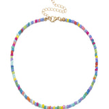 A vibrant handmade choker featuring multicolored rice beads, perfect for a boho-chic beach look. Lightweight and stylish for effortless everyday wear.