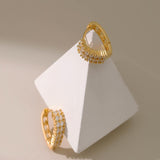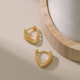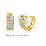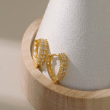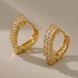 These huggies earrings feature a sleek V-shaped design with dual row zircons, plated in 18K gold for a modern, elegant look.