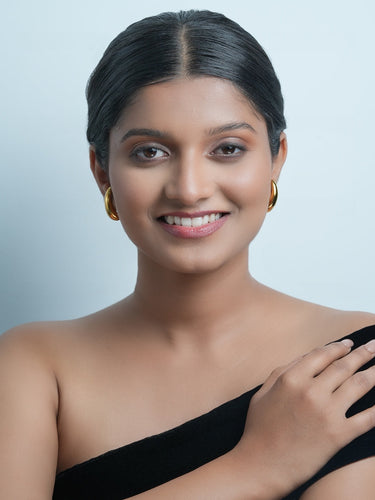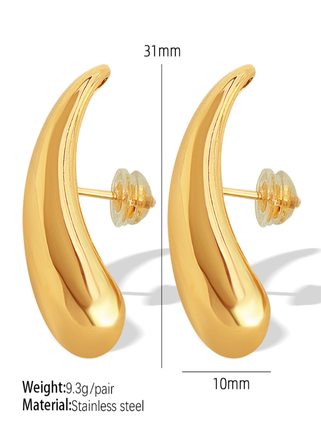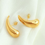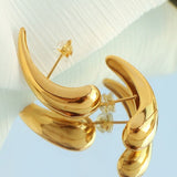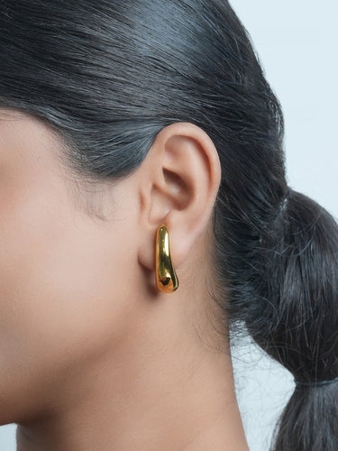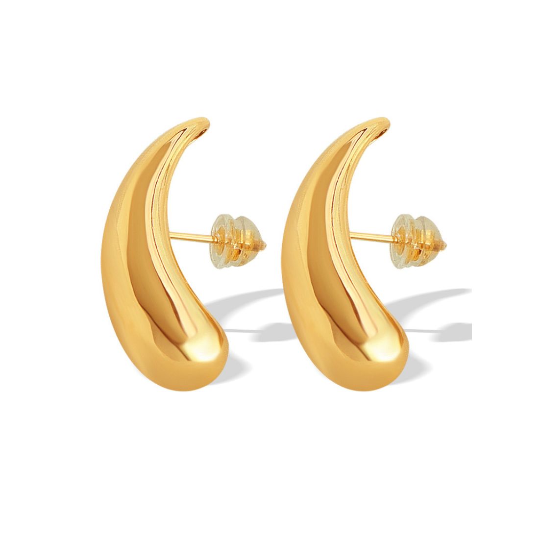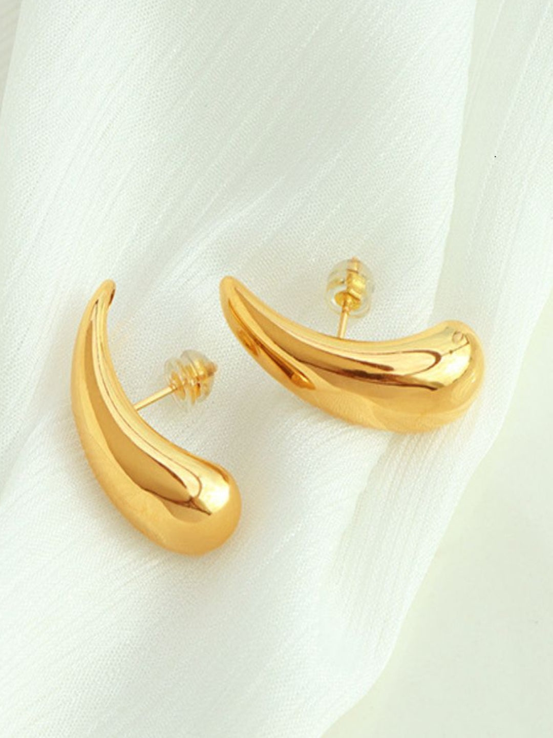 Elevate your style with these unique 18K gold-plated long tear drop Bottega stud earrings.