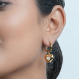 Add a romantic touch to your look with these 18K gold-plated heart drop hoop earrings.