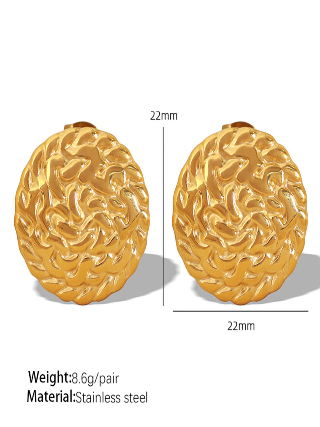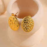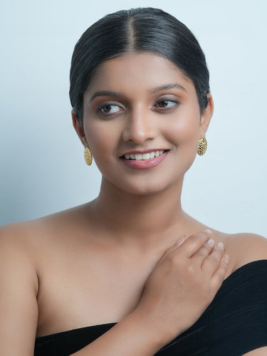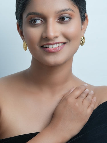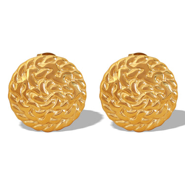 Enhance your outfit and stand out with these unique 18K gold-plated round Hammered stud earrings.