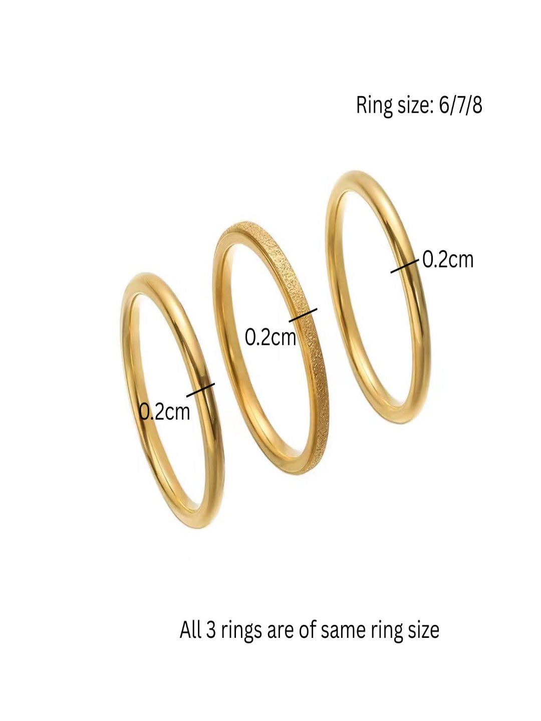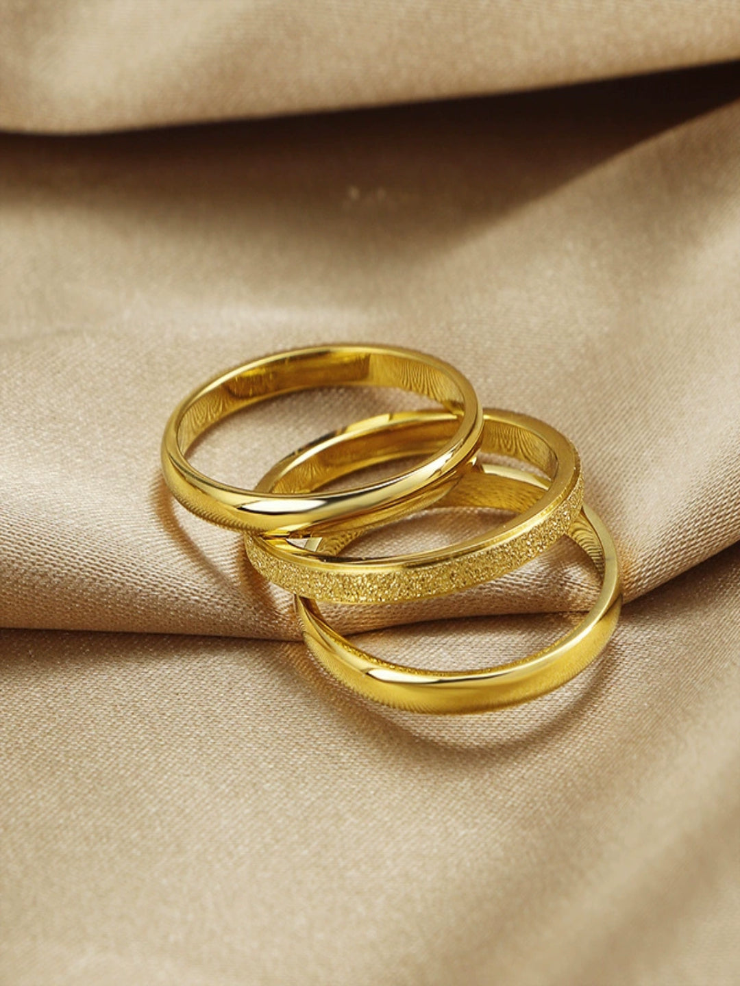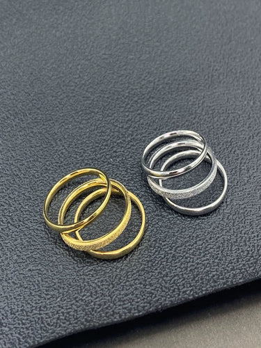 The Lumina Trio Ring Set offers a timeless fusion of elegance and versatility. Featuring three sleek bands—two with a smooth, polished surface and one with a subtle textured finish—this set is perfect for stacking together for a bold statement or wearing individually for a refined touch. Available in both gold and silver tones, these lightweight, comfortable rings transition effortlessly from casual to formal looks, making them a staple you’ll wear season after season.