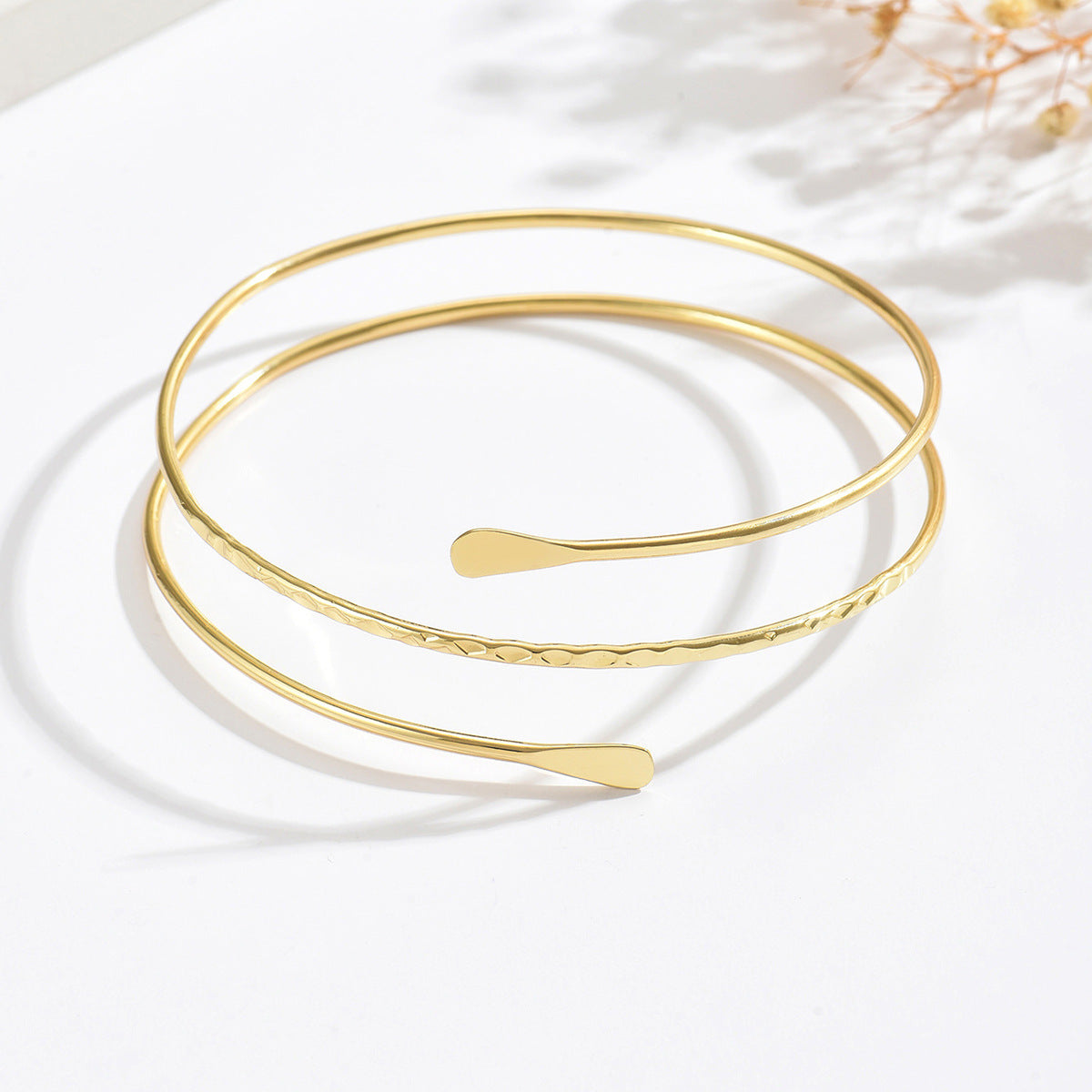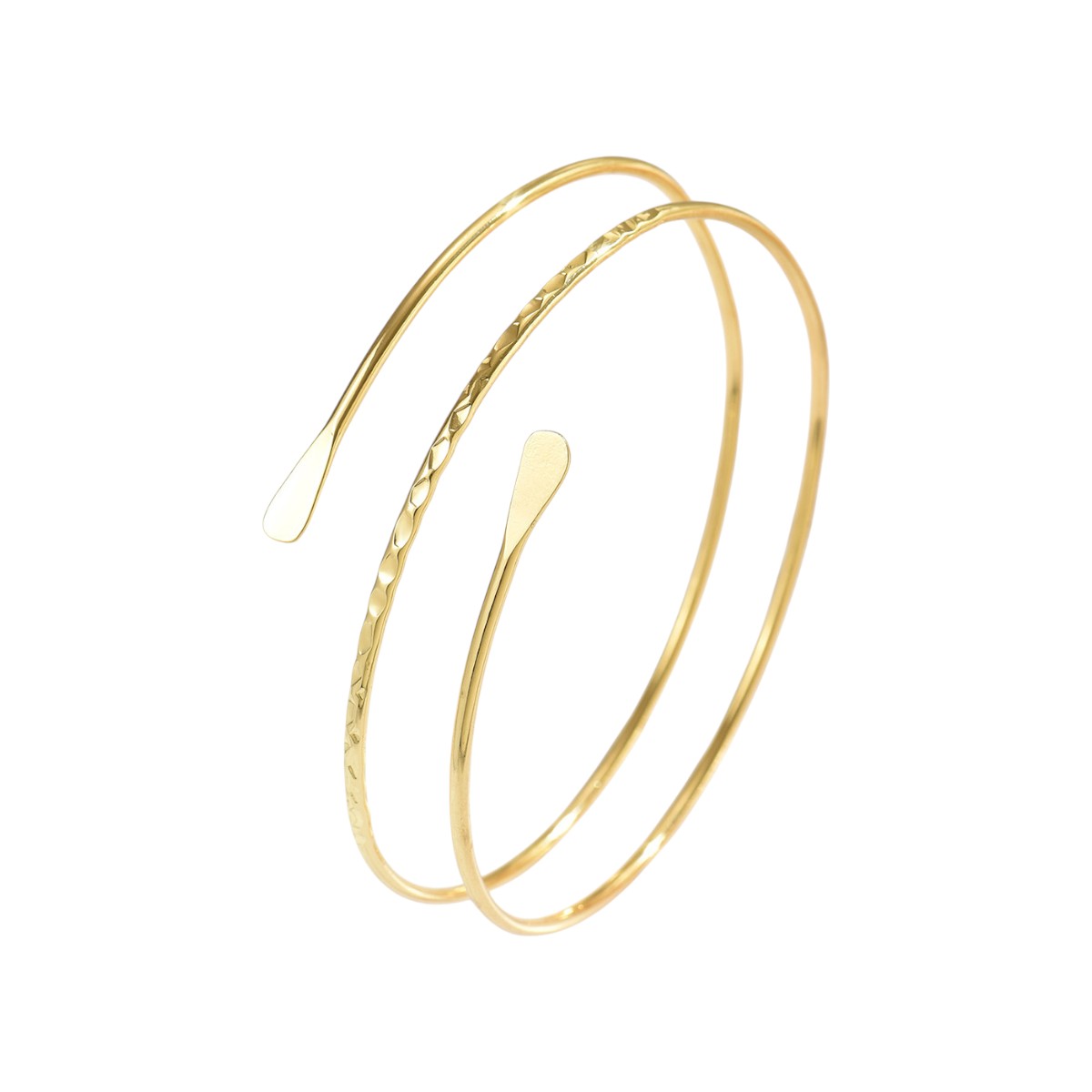 Elevate your boho charm with this stunning gold-plated arm cuff — a statement accessory inspired by nature and free-spirited fashion. Available in beautiful leaf, spiral, and floral designs, it wraps gracefully around the arm, adding a touch of elegance to your beachwear, festive, or party outfits. Lightweight and adjustable, this armlet is the perfect blend of comfort, confidence, and chic allure. The cuffs are flexible and can be easily adjusted — just gently move the cuff to fit it perfectly to your upper arm.