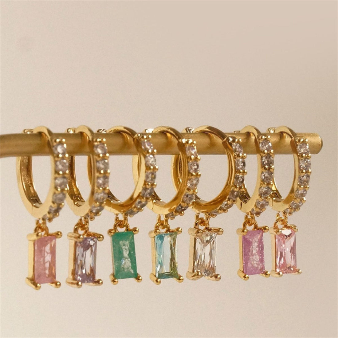 Small in size, big on sparkle. These 18K gold-plated zircon drop huggies bring effortless elegance to your everyday. Featuring a delicate drop design with brilliant-cut zircons, they add that perfect glimmer whether you're at brunch or date night.
