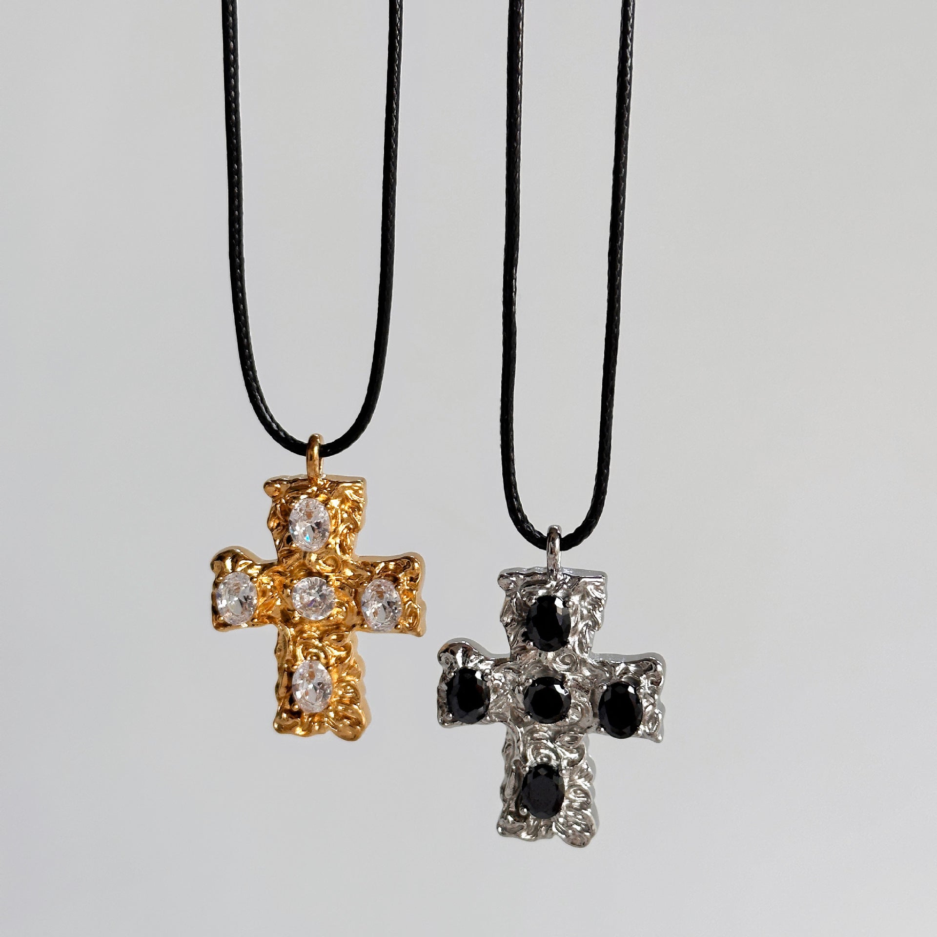 Elevate your style with this stunning 18K plated zircon cross pendant with black cord, designed for women and men who love jewelry that blends meaning with modern elegance. The shimmering zircon stones add a dazzling touch to the classic cross silhouette, making this pendant with black cord perfect for everyday wear, religious occasions, parties, and gifting. Crafted with waterproof and anti-tarnish plating, this necklace maintains its shine through daily use, sweat, and showers—offering long-lasting brilliance without fading. Whether paired with your casual fits, party dresses, or layered with other chains, it delivers a chic, spiritual, and stylish statement in one beautiful piece.